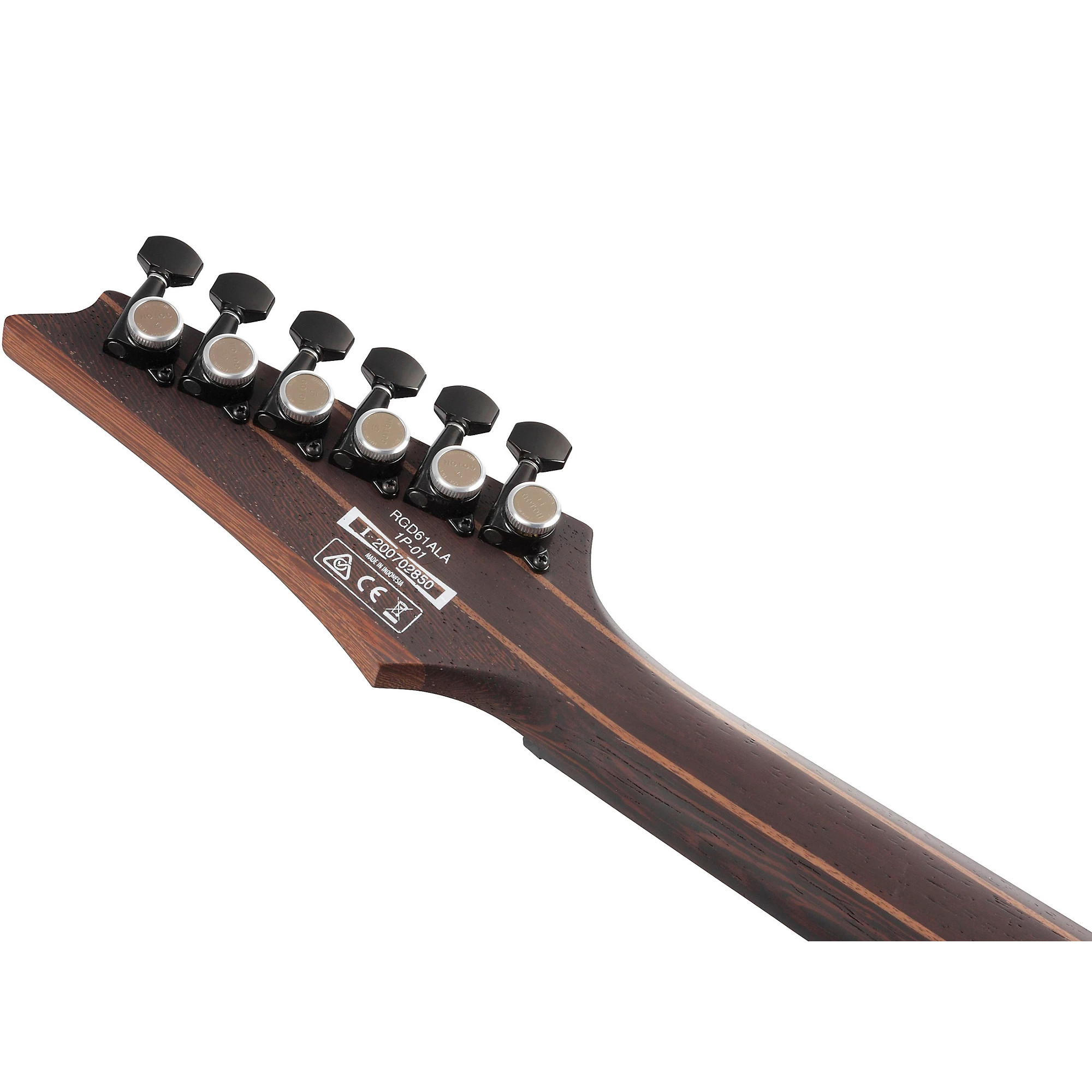 Ibanez RGD61ALA – это модель электрогитары с цельным корпусом серии RGD, представленная Ibanez в 2019 году. Она произведена в Индонезии как часть линейки Axion Label, ориентированной на металл. Гитары RGD имеют корпус, основанный на серии RG, но со специальными фасками и глубокими вырезами на рожках. У них также очень длинный гриф с мензурой 26,5 дюймов. RGD61ALA имеет корпус из ясеня, к которому привинчен гриф из панга-панга и ореха с накладкой из черного дерева. Гриф Nitro Wizard – один из самых быстрых и гладких грифов Ibanez на сегодняшний день. Компоненты включают в себя пару активных звукоснимателей-хамбакеров Fishman Fluence, бридж Mono-rail и запирающие колки Gotoh. RGD61AL – аналогичная модель с пассивными звукоснимателями DiMarzio и топом из огненного клена. RGD61ALET – родственная модель с корпусом выполненным из ньято, топом из клена и брилжем Evertune. RGD61ALMS – родственная модель с мультимензурным грифом.