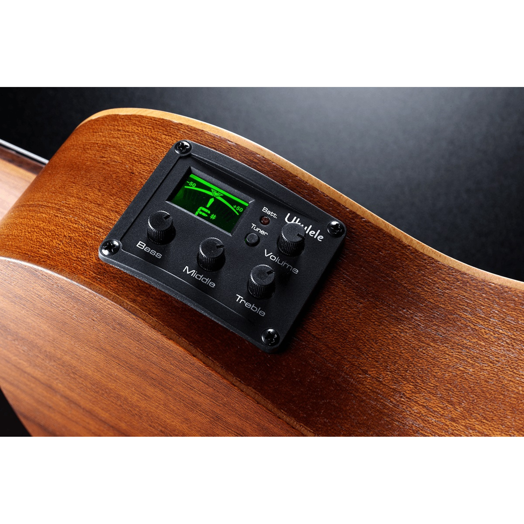Следует отметить, что данная модель оснащена звукоснимателем и системой усиления, позволяющими настраивать звучание гитары как вздумается. Для этого есть регуляторы громкости, 3-полосный эквалайзер, а также тюнер, облегчающий настройку струн.