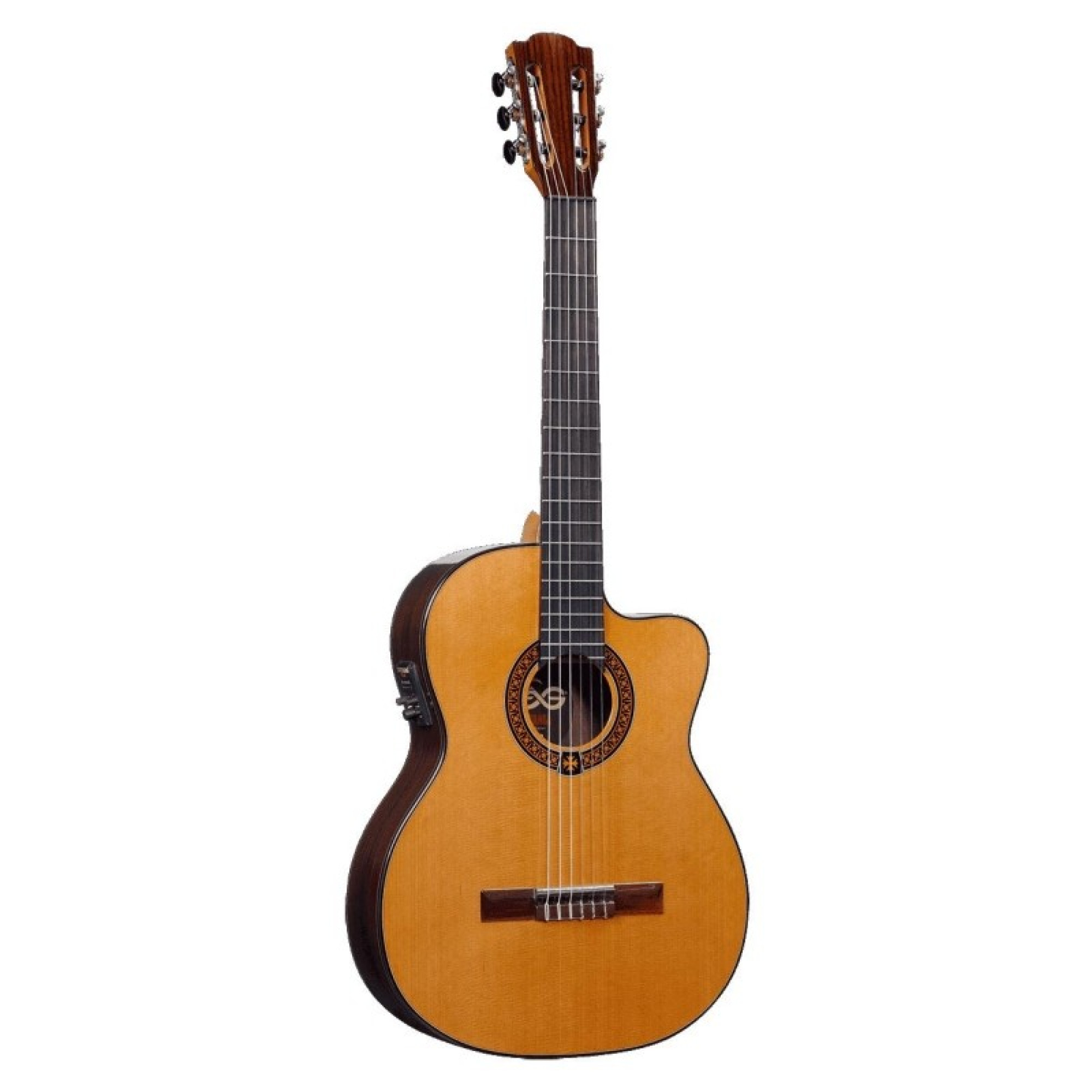 LAG Occitania OC300CE – это классическая гитара со встроенным звукоснимателем и вырезом. Французский производитель славится своими инструментами, звучание и качество которых делает их одними из лучших на рынке в своем сегменте. Данная модель электроакустической 6-струнной гитары имеет полноразмерную (4/4) классическую деку (но с вырезом), покрытую глянцевым лаком. Верхняя дека инструмента – массив кедра, нижняя дека и обечайки сделаны из индийского палисандра.