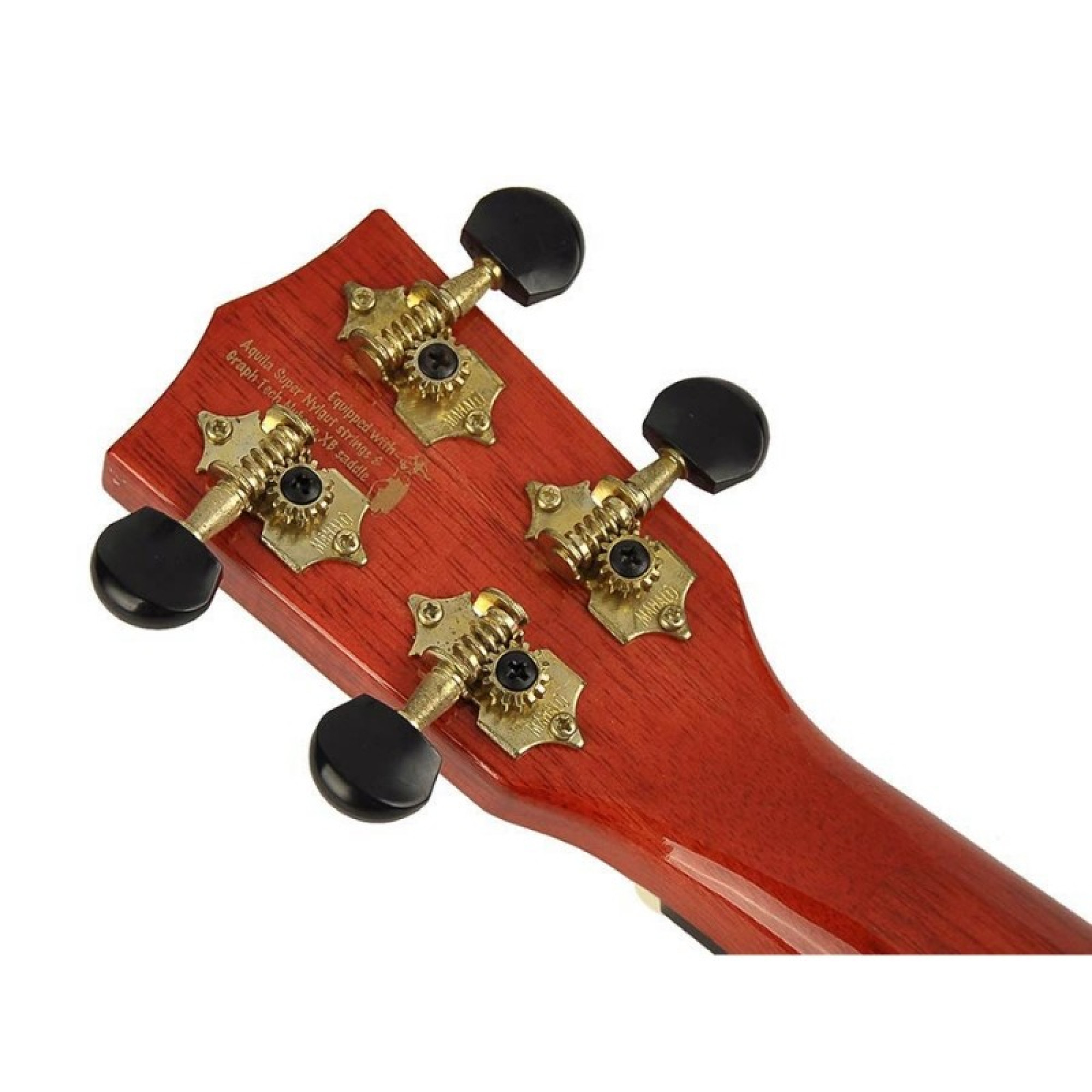 Производитель выбрал лучшие материалы и фурнитуру для изготовления инструмента, сумев соединить их в нестандартном русле. Укулеле продуманна до мельчайших деталей: колки и порожки из качественного позолоченного металла отлично смотрятся на страстно-красной древесине. Струны производства Aquila, нережущие и мягкие. Лады из никеля, порожки крепко закреплены на поверхности.