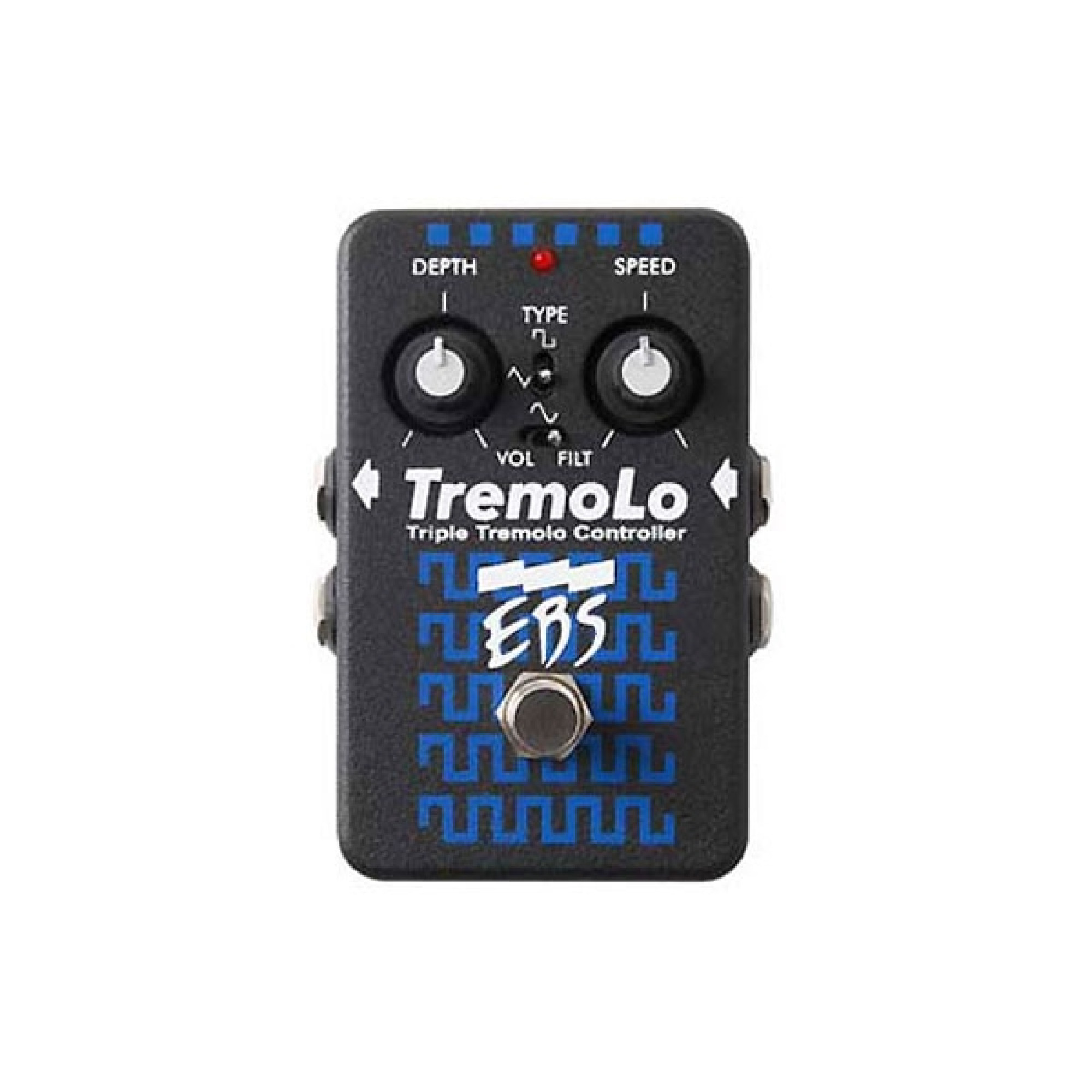 Управление. Как и большинство педалей тремоло, EBS Tremolo оснащена ручками Depth (глубина модуляции) и Speed (частота модуляции) и переключателем формы волны (синусоидальная, пилообразная, квадратная).