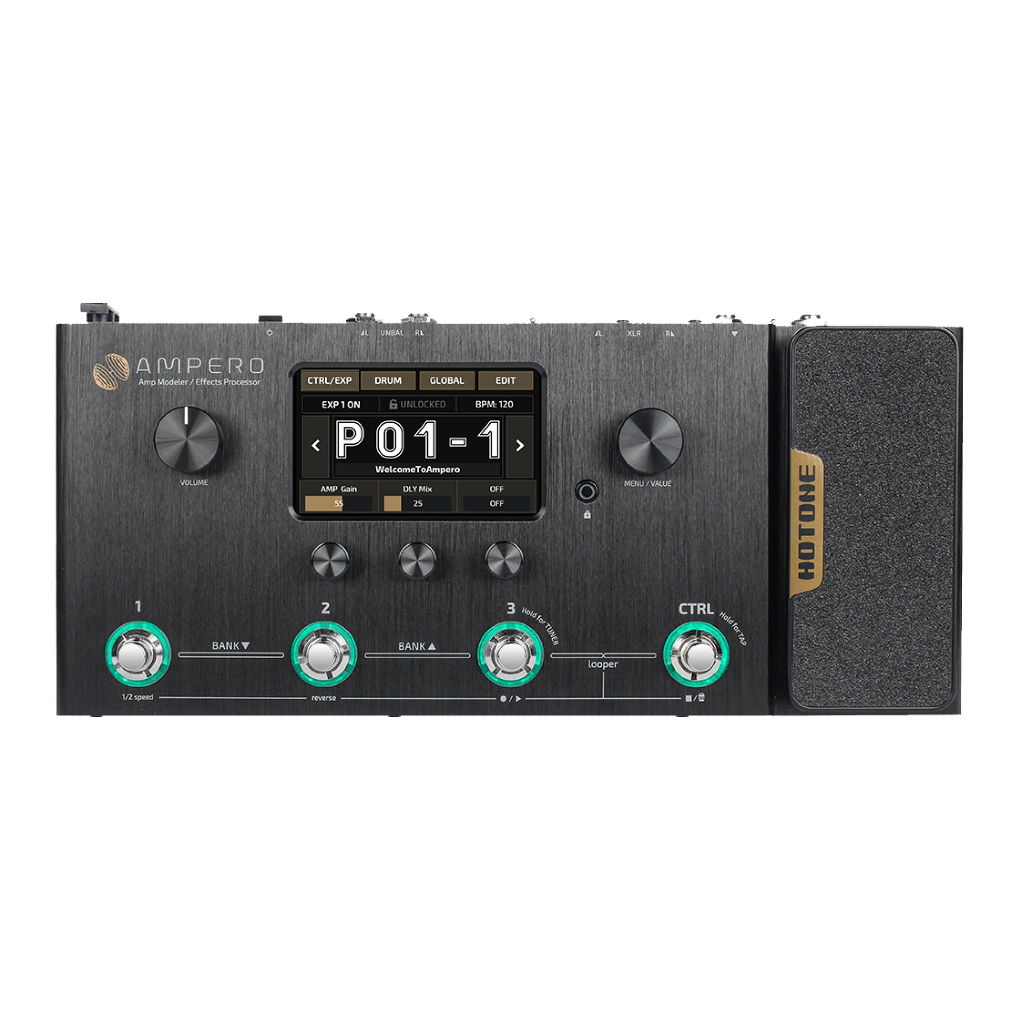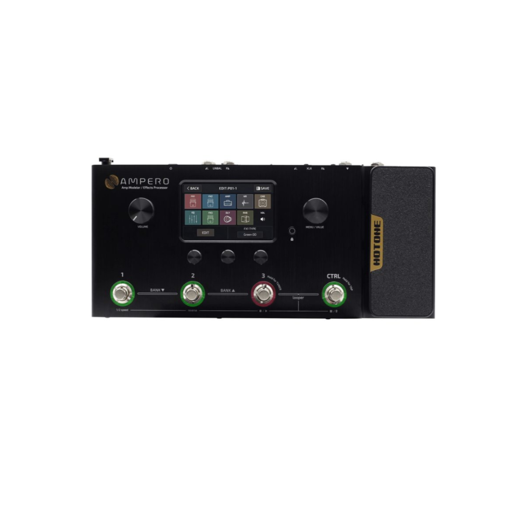 HOTONE AUDIO AMPERO разработан простым и интуитивно понятным, так что вы можете просто начать играть. Доступный пользовательский интерфейс оснащен 4-дюймовым сенсорным экраном 800x480 с динамическим цветным дисплеем и тремя регуляторами быстрого доступа для настройки параметров.
