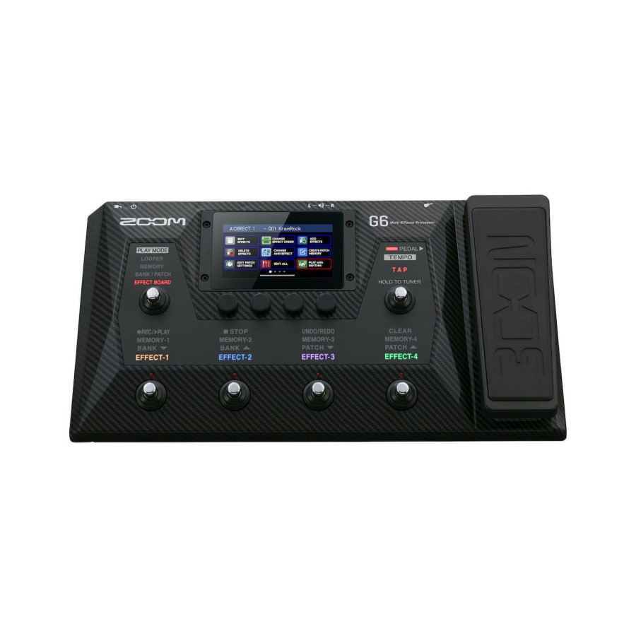 Zoom G6 является современным и мощным гитарным процессором для музыкантов, обеспечивающим широкий спектр возможностей для обработки звука. Данное устройство оснащено интегрированным педалбордом с шестью переключателями и экспрессионной педалью, что позволяет удобно управлять эффектами в реальном времени.