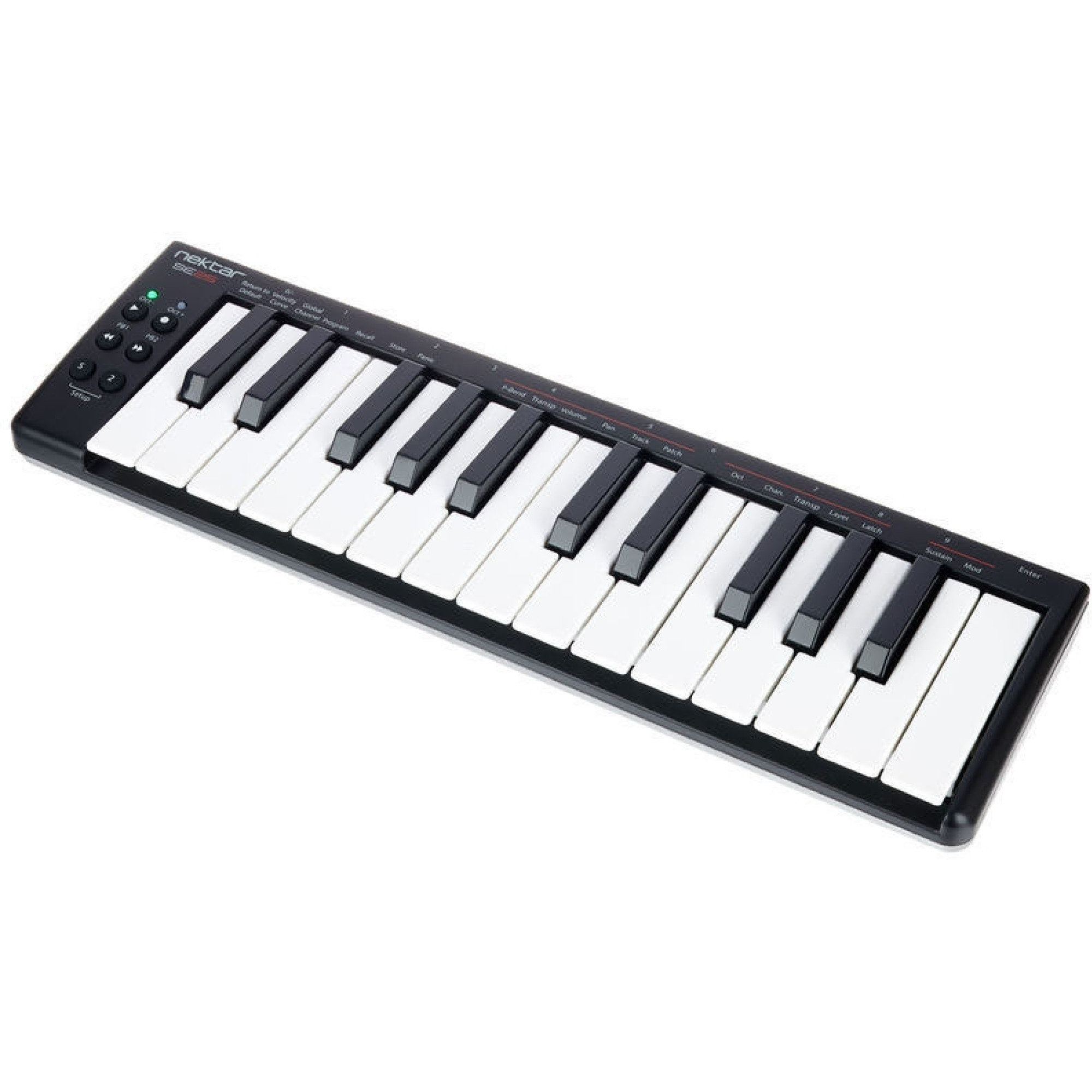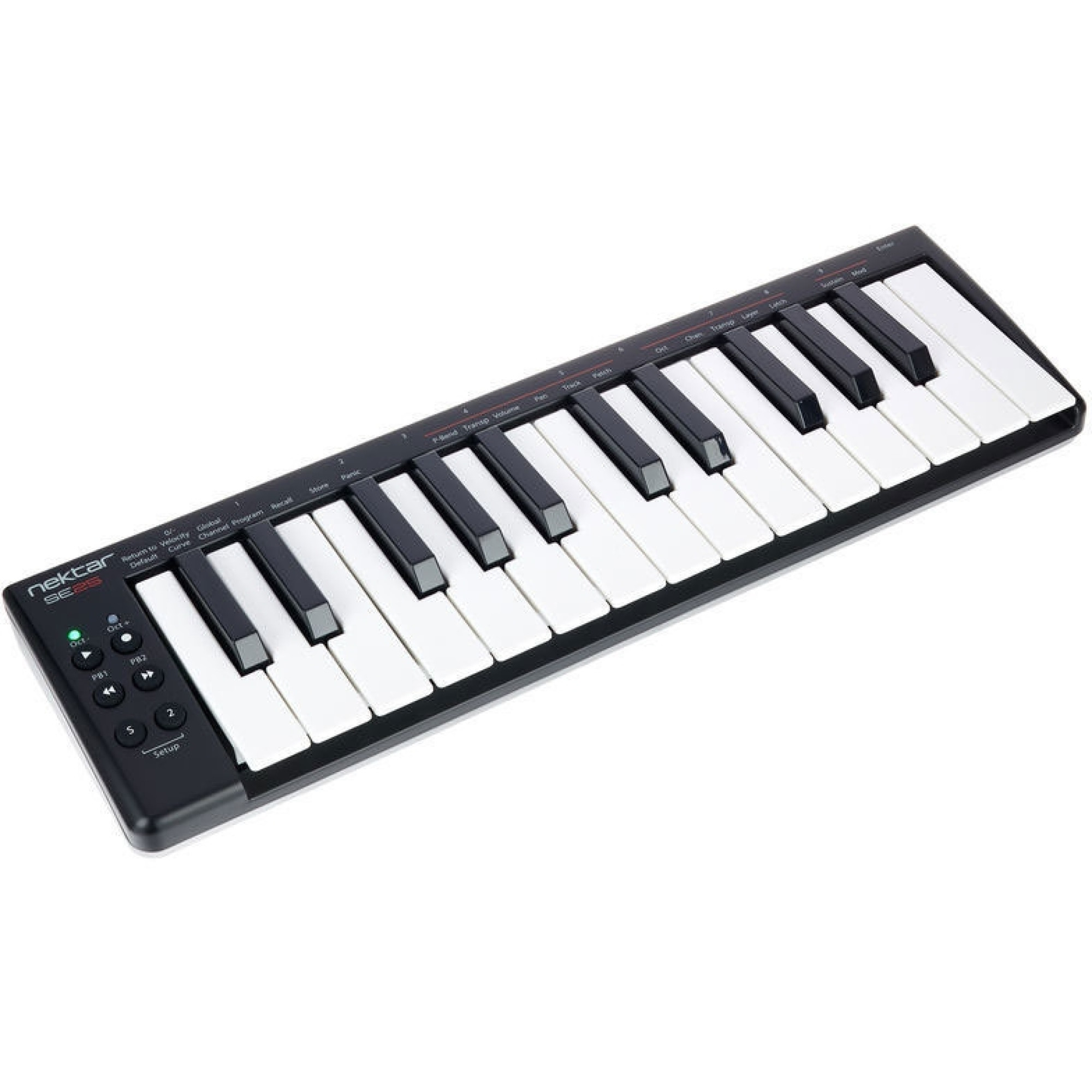 Клавиши – одна из наиважнейших составляющих миди-контроллера. Ведь фактически именно они передают исполняемые Вами звуки и музыкальные идеи для последующей компьютерной обработки. А так как целью разработки модели SE25 была наилучшая мобильность и компактность клавиатуры (чтобы она поместилась в любой рюкзак!), то и полноразмерным клавишам просто не хватило бы здесь места. Поэтому в Nektar разработали новую мини-клавиатуру с чувствительными к скорости нажатия клавишами. Несмотря на миниатюрные размеры клавиш, клавиатура обеспечивает экспрессивное исполнение и придает звучанию четкость и устойчивость. Более того, три кривых скорости на выбор позволяют Вам настраивать отклик клавиатуры под Ваш стиль исполнения.