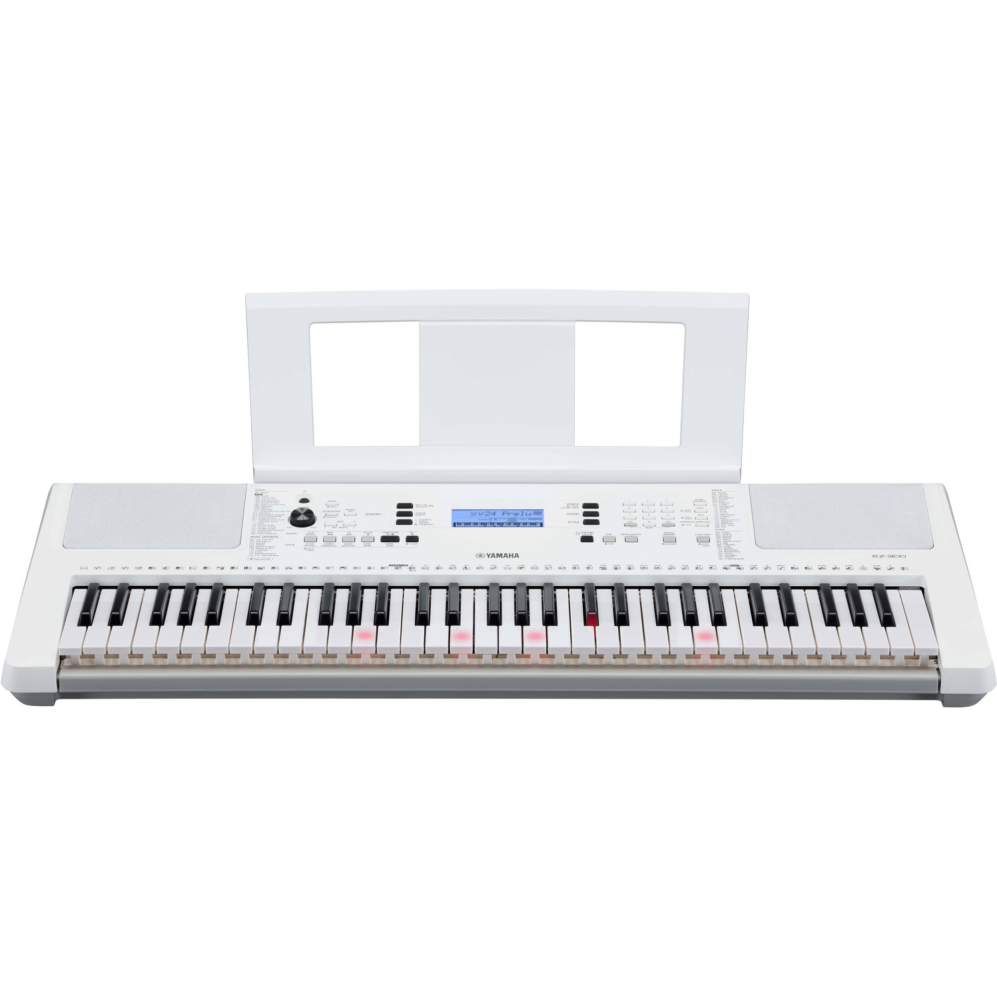 Yamaha EZ-300 – это портативный синтезатор, который оснащен инструментами, что делает обучение игре исключительно легким для начинающих. Клавиши светятся, показывая, какую ноту следует нажать следующей, что позволяет Вам укрепить уверенность в себе, играя вместе со встроенными песнями и уроками. Вы также можете использовать систему Keys to Success, чтобы практиковаться и разучивать песни в своем собственном темпе, даже если Вы не умеете читать ноты. Благодаря серебристо-белой высококачественной отделке стильный дизайн EZ-300 подходит практически к любому интерьеру и может стать прекрасным дополнением Вашей комнаты. Кроме того, компактный корпус (менее 1 метра) и питание от аккумулятора позволяют носить его с собой и играть в любом месте.