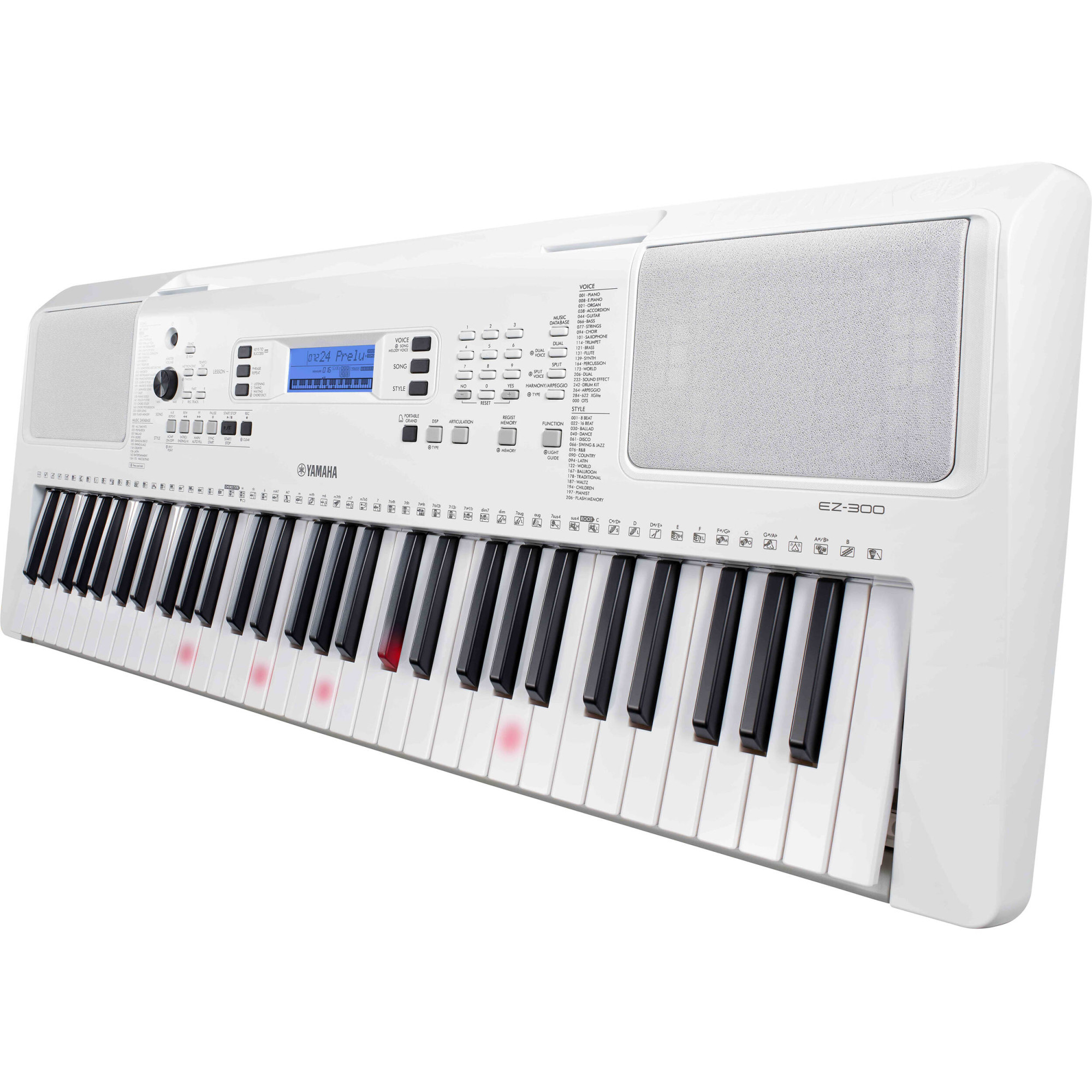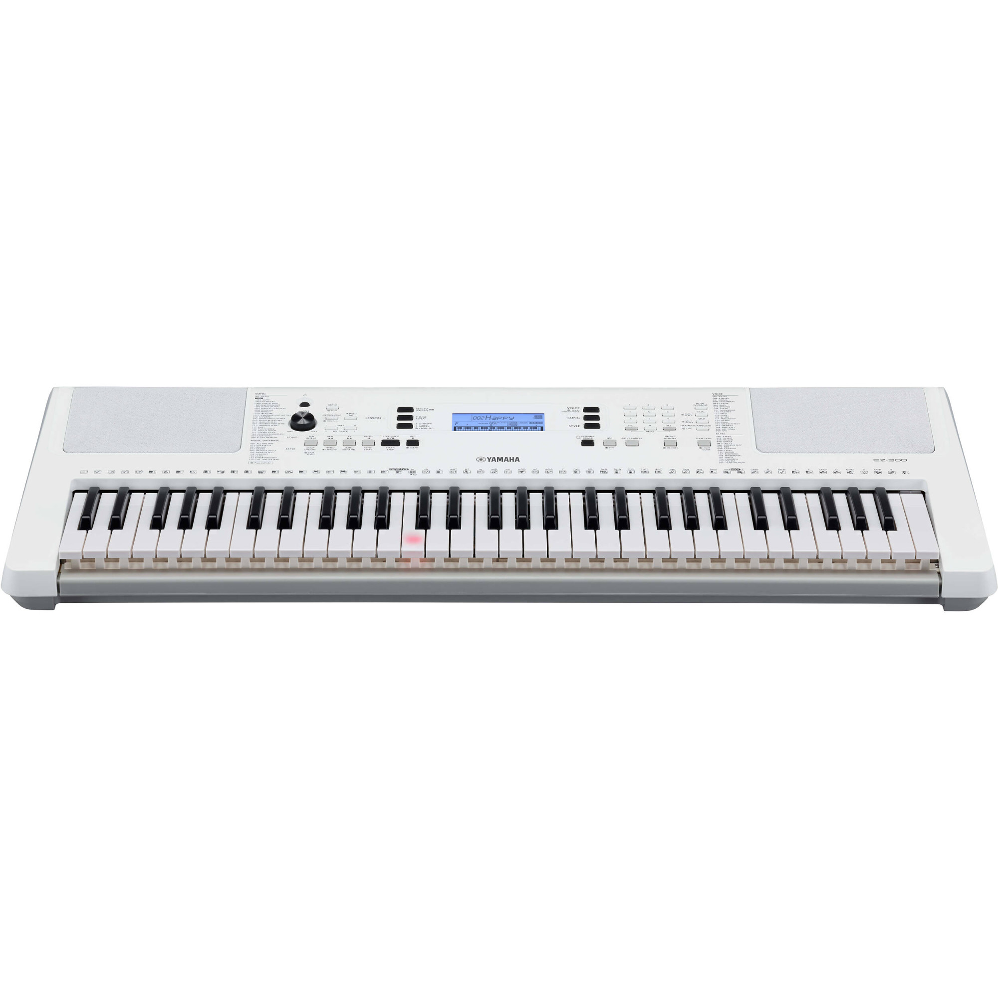 EZ-300 оснащен 61 полноразмерной клавишей с сенсорной чувствительностью, которая добавляет музыкальную выразительность Вашим мелодиям, ощущая жесткую и мягкую игру и согласовывая динамику каждого удара клавиши. Он предлагает 622 высококачественных инструментальных звука, включая струнные, гитары, духовые, саксофоны и ударные – некоторые из них с технологией Super Articulation Lite для воспроизведения уникальных нюансов, слышимых при игре на акустических инструментах. Специальная кнопка позволяет быстро переключиться на богатое звучание рояля. Множество эффектов DSP позволяют улучшить звучание с помощью реверберации, хоруса и т.д.