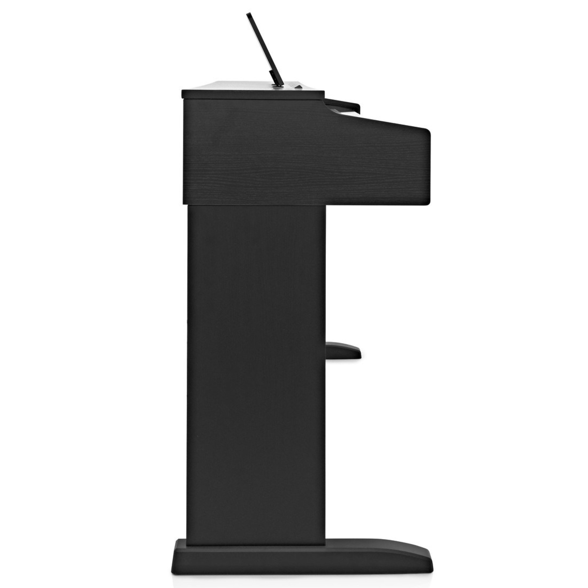 Отличия новинки от предшественников бросаются в глаза при первом же взгляде. Те, кто имел дело с предыдущими моделями, сразу обратят внимание на слегка измененный дизайн корпуса. Претерпела изменений и панель кнопок. Если ранее она располагалась над клавиатурой, то теперь находится слева от нее. Что касается цветовых решений, то производитель предлагает три варианта: черный, белый и коричневый. Компактные размеры сделают пианино не только музыкальным инструментом, но и украшением помещения.
