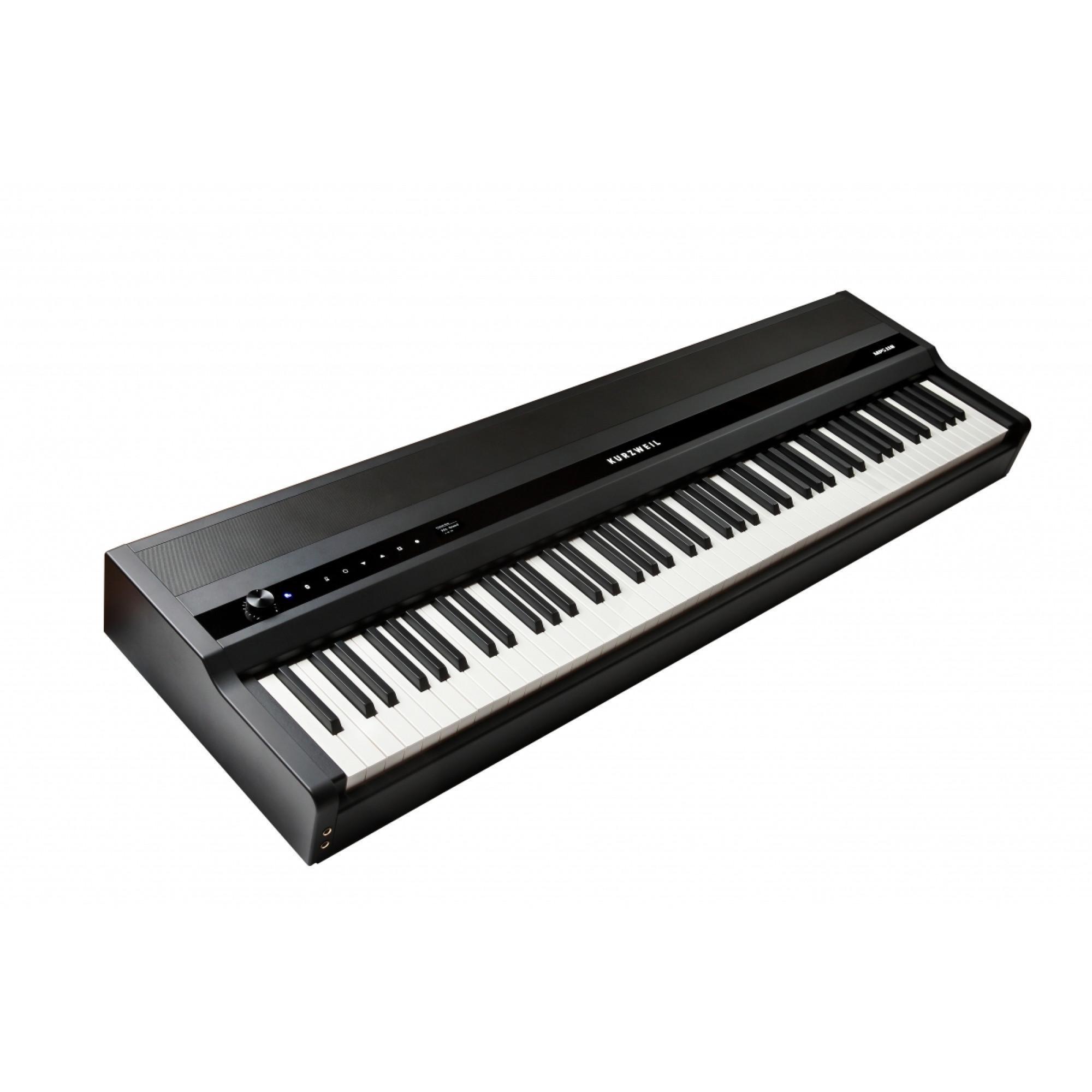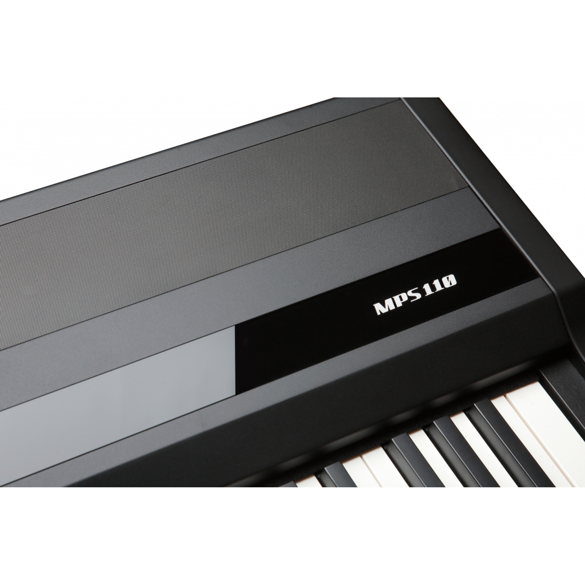 Kurzweil MPS110 – цифровое пианино сценического уровня, 88 клавиш, полновзвешенная клавиатура с молоточковым механизмом, чувствительность к нажатию и скорости, полифония 256 голосов, эффекты, АС 24 Вт, USB, Bluetooth, USB кабель и педаль в комплекте.