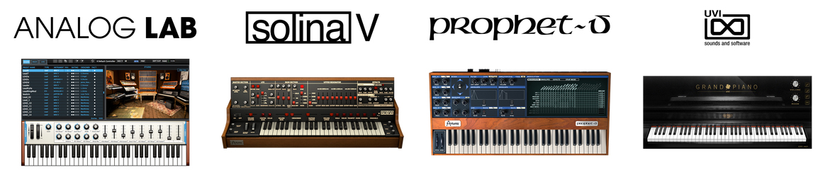 В дополнение к AnalogLab, KeyLab Black Edition поставляется в комплекте с программным обеспечением Solina V string machine, легендарным синтезатором Prophet V и UVI Grand Piano Model D.
