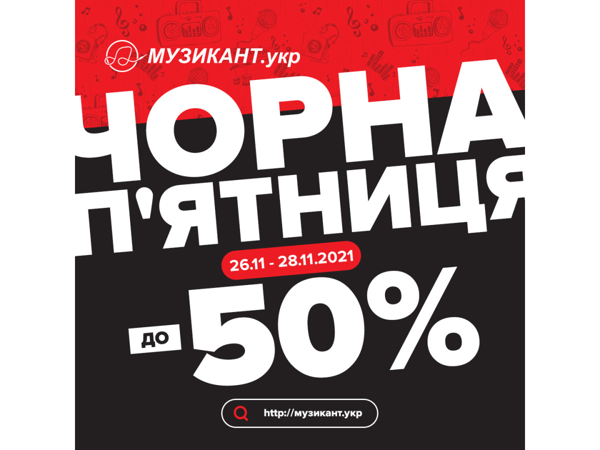 Только три дня! С 26 по 28 ноября в Музыкант.укр будут действовать скидки от 5 до 50% абсолютно на все: барабаны, гитары, клавишные, духовые, народные, смычковые, микрофоны, наушники, акустические системы и другие музыкальные инструменты и звуковое оборудование!