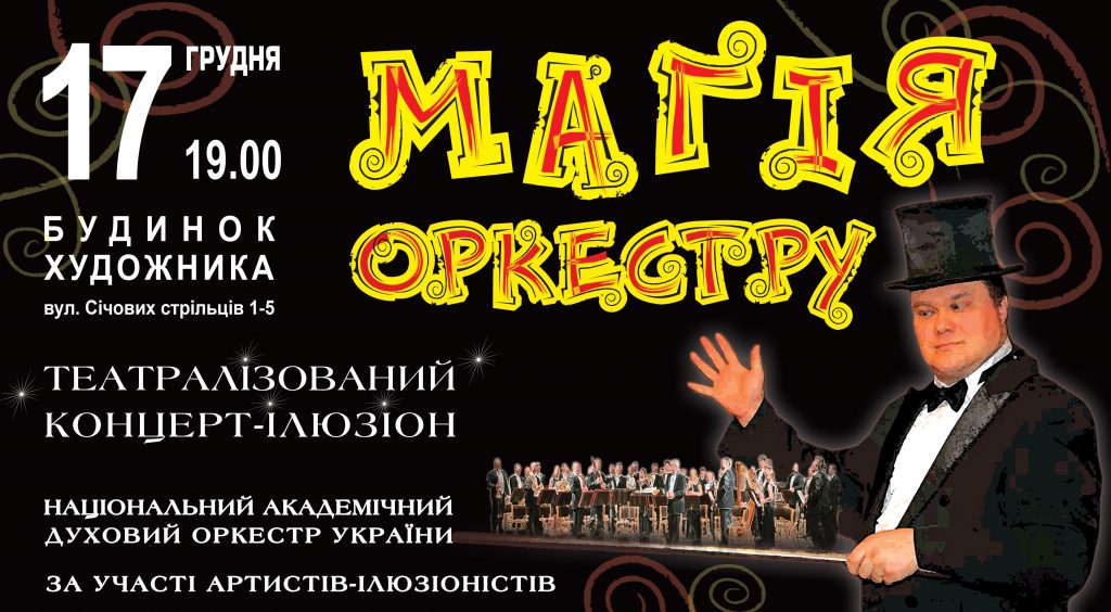 Однако точный ответ на вопросы, обозначенные выше, Вы сможете найти 17 декабря: приходите в Центральный дом художника в Киеве, где состоится действительно уникальное и захватывающее шоу – «Магия оркестра»!