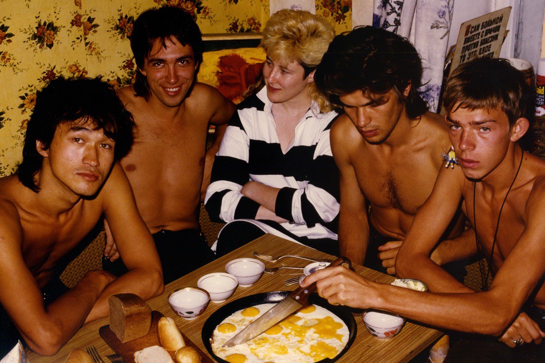 Виктор Цой, Сергей Курёхин, Джоанна Стингрей, Сергей Бугаев и Александр Липницкий (группа "Звуки Му")