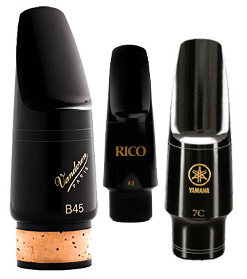 Материал. Кларнетовые мундштуки изготавливают из эбонита или фенольной смолы. Для саксофонов так же делают металлические варианты, которые характеризуются более ярким, резким звуком и применяются чаще в эстрадной музыке и джазе.