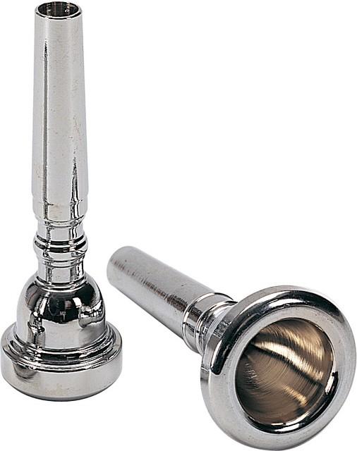 Итак, чашка. Зачастую для начинающих исполнителей рекомендуют мундштуки с чашкой среднего диаметра и глубины. Например, для трубы это 7С или немного большего диаметра 5С, соответствующие нумерации фирмы Bach. Глубина чашки влияет на качество и окраску тембра: более глубокая дает объемный плотный звук и удобна для излечения звуков нижнего регистра. Такие мундштуки выбирают оркестранты, играющие нижние голоса. Соответственно, мелкие чашки хороши для верхнего регистра.