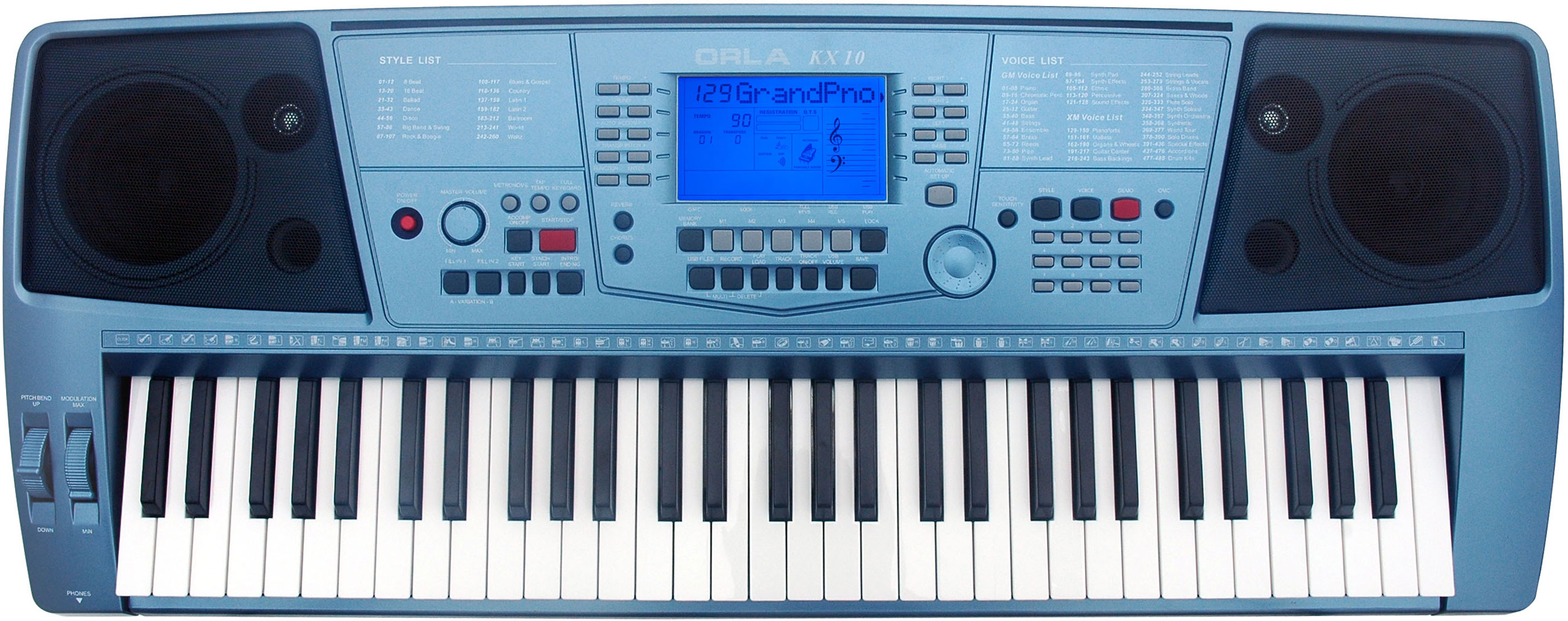 В Orla KX-10 предусмотрено 260 стилей автоаккомпанемента, что дает возможность, чтобы синтезатор сам проигрывал заданную партию сопровождения аж в 260 вариантах. Стерео-сэмплирование AWM обеспечивает хороший реалистичный звук и естественную выразительность, что дает от игры одно наслаждение. Большое количество демонстрационных композиций (26). А наличие секвенсора существенно облегчает процесс записи музыкальных произведений. Семплы широко используются при написании современной музыки, их тут аж 485.