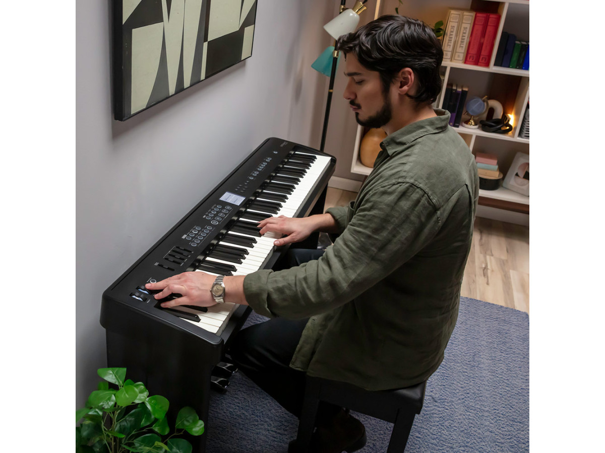 Будь Вы новичок в игре на фортепиано или опытный игрок, FP-E50 обеспечивает богатую основу для обучения, практики и исполнения. Звуковой движок SuperNATURAL Piano от Roland предлагает аутентичные ощущения и интерактивный отклик акустического рояля, позволяя Вам вытягивать бесконечные тональные краски с помощью динамики игры. 88 полноразмерных клавиш с молоточковой механикой, спусковым механизмом и материалом цвета слоновой кости, обеспечивающим такое же ощущение под Вашими пальцами, как и у акустического инструмента мирового класса.