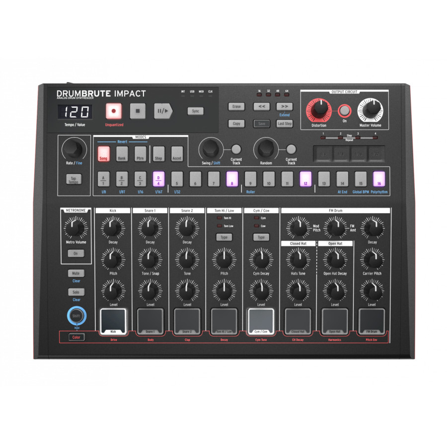 DrumBrute Impact объединяет в себе захватывающе мощную производительность дебютной драм-машины Arturia с абсолютно новым набором звуков. Каждый из 10 ударных и перкуссионных элементов имеет свой неповторимый характер, все они превосходно дополняют друг друга и могут быть модифицированы с помощью специально разработанного «Color» sound shaper буквально на лету. Насладитесь убойным звучанием с общим дисторшн-контролем, создавайте бесконечные полиритмические секвенции, откройте для себя аналоговые ударные в новом формате.