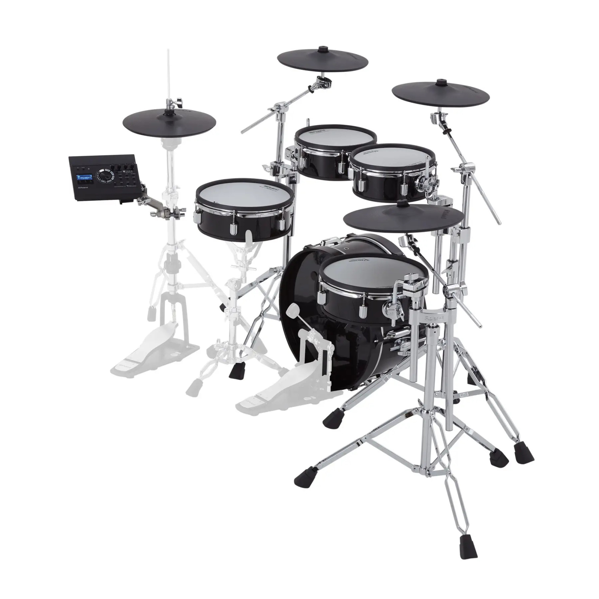 Электронная ударная установка Roland VAD307 намеренно компактна, сохраняя при этом отличительную эстетику V-Drums Acoustic Design. Занимаемая площадь такая же, как у набора V-Drums среднего уровня, что делает его идеальным комплектом для домашнего использования и тесных сцен. Укороченные неглубокие корпуса экономят место, но с игровой позиции они сразу кажутся знакомыми любому барабанщику. Двойные стойки с креплениями для томов и штангами для тарелок завершают композицию и усиливают акустическую тему. Обновленный модуль TD-17 обеспечивает все акустическое звучание и удобство игры, о которых Вы только могли мечтать, дополненное большим количеством предустановленных наборов, расширенными эффектами и поддержкой Roland Cloud. VAD307 также оснащен недавно разработанными тонкими тарелками для крэша и райда с естественными ощущениями и движением качания, а также флагманскими стойками для надежной работы.