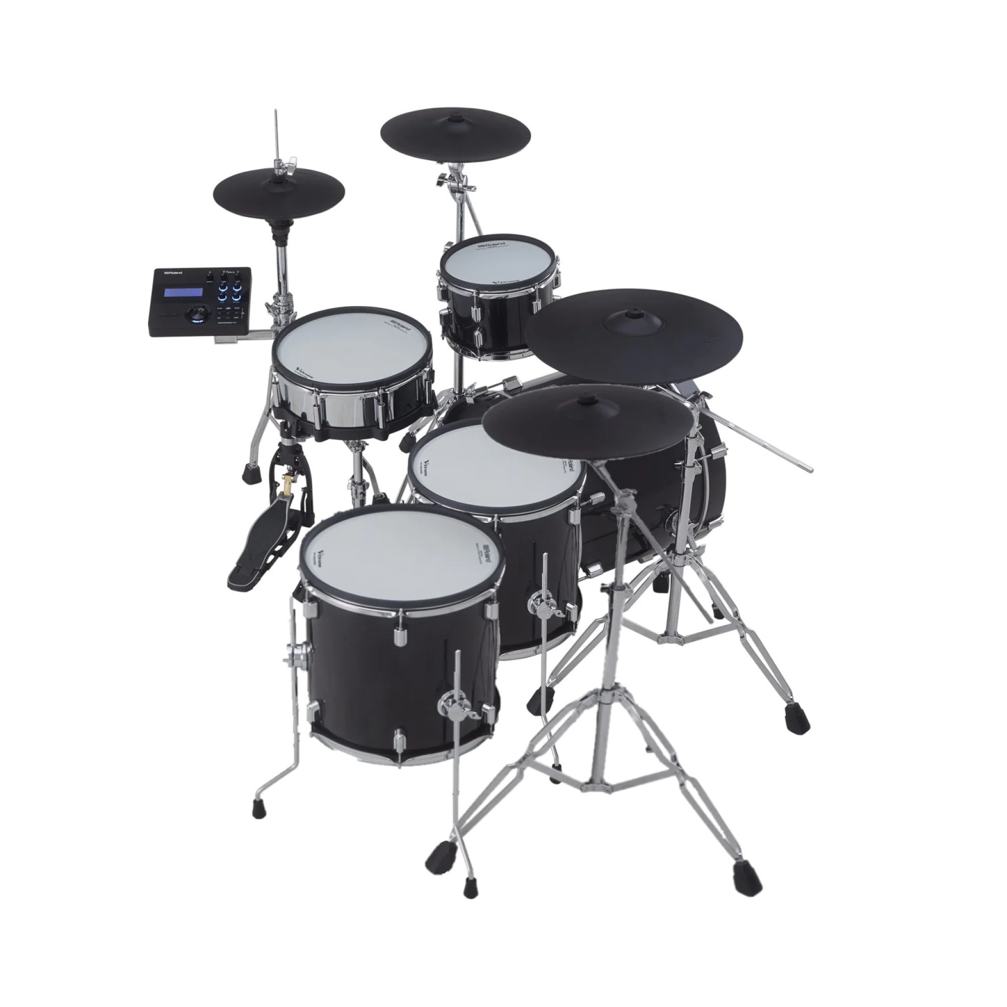 Ищете ударную установку, которая будет выглядеть как акустическая, но иметь все функции и комфорт электронной? VAD506 – это именно то, что Вам нужно. Установка оснащена великолепными полноразмерными барабанами высокого класса, которые крепятся на элегантной хромированной стойке. Игра на VAD506 действительно дарит ощущение, будто Вы играете на настоящей акустической установке.