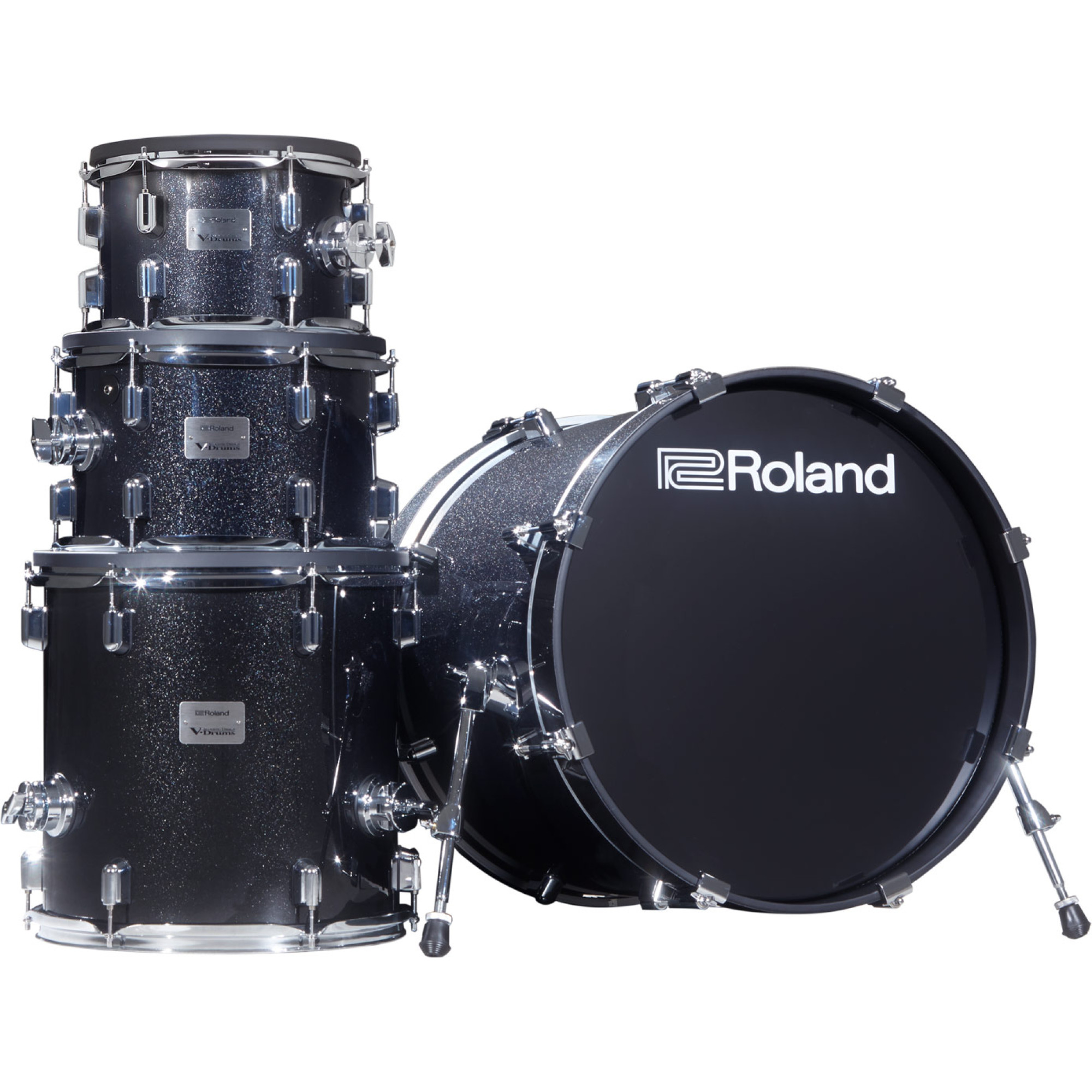 - Устанавливаемый на стойку том PDA100-MS (10"), устанавливаемый на стойку том PDA120-MS (12"), напольный том PDA140F-MS (14") и бас-барабан KD-200-MS (20") с выполненными на заказ хромированными деталями и покрытием Midnight Sparkle
