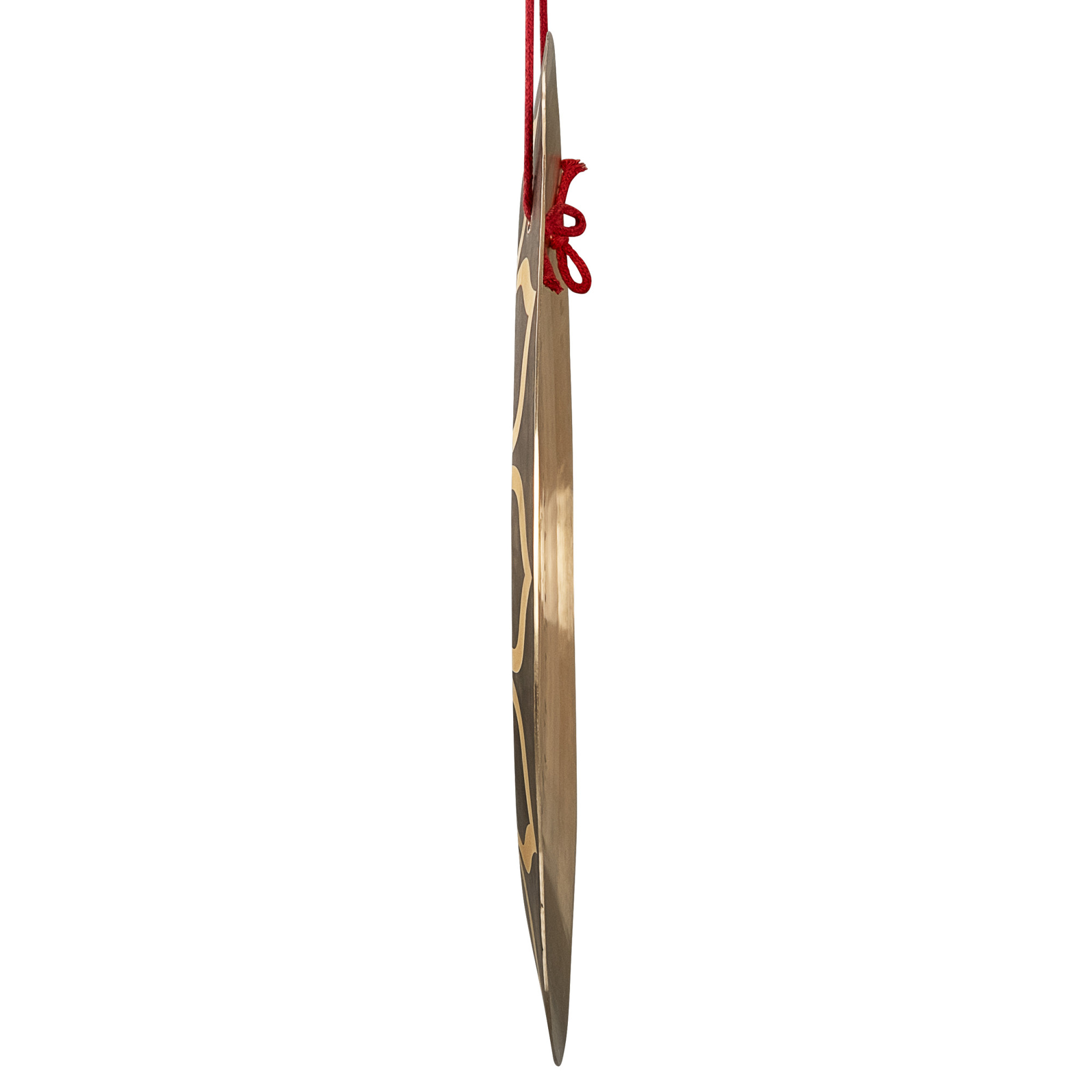 Sela Wind Gong Lotus имеет почти плоскую форму с не загнутым назад внешним краем. Его поверхность обработана и скручена в разной степени по внешнему краю, посередине и между ними, что само по себе придает особенный, характерный вид с частично мерцающим матово-золотым покрытием. Тем не менее, Sela Wind Gong Lotus выделяется своим элегантным мотивом лотоса, который нанесен на внешнюю часть. Цветок лотоса также известен как «цветок жизни» и имеет множество духовных значений — среди прочего, он символизирует чистоту сердца, творчество, мудрость и просветление.