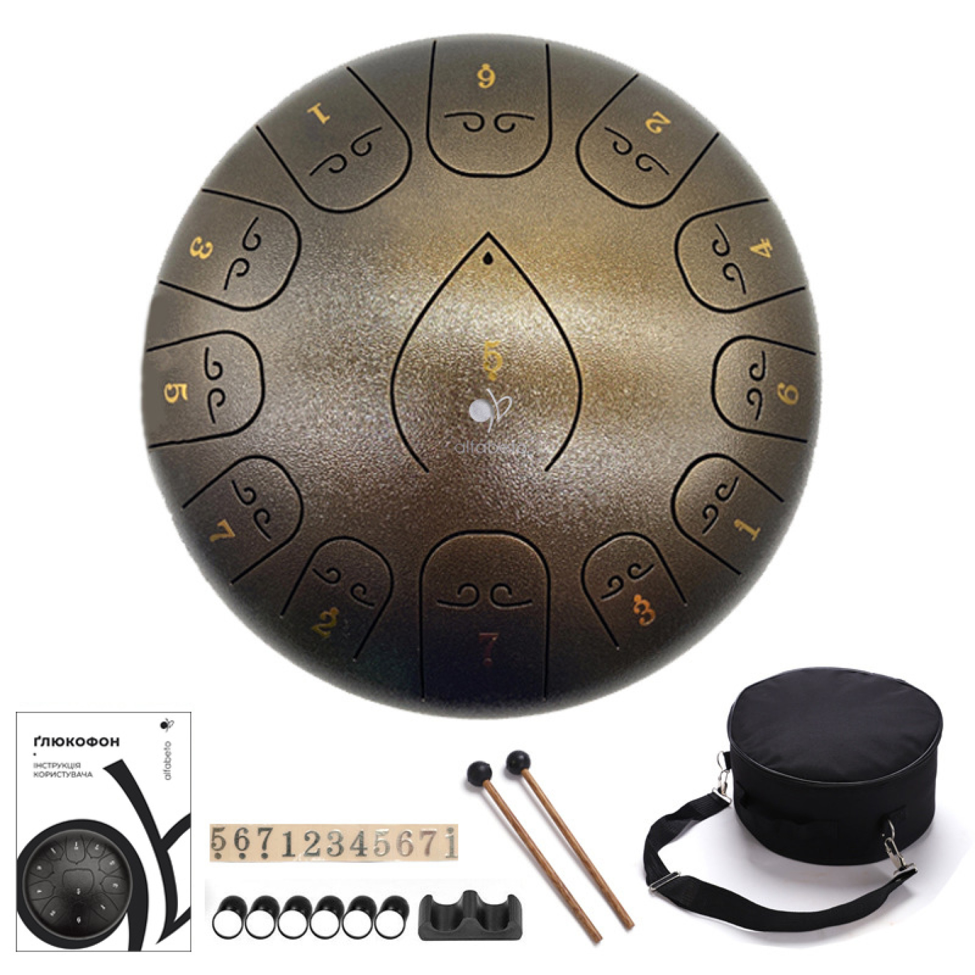 Глюкофон GLP12 от бренда Alfabeto – это отличный музыкальный инструмент, который помогает создавать уникальные мелодии, которые перенесут Вас в мир покоя и гармонии. Этот инструмент имеет размер корпуса 12 дюймов, а его платформа для игры содержит 13 пронумерованных лепестков, что позволяет создавать разные музыкальные композиции и изучать новые мелодии.