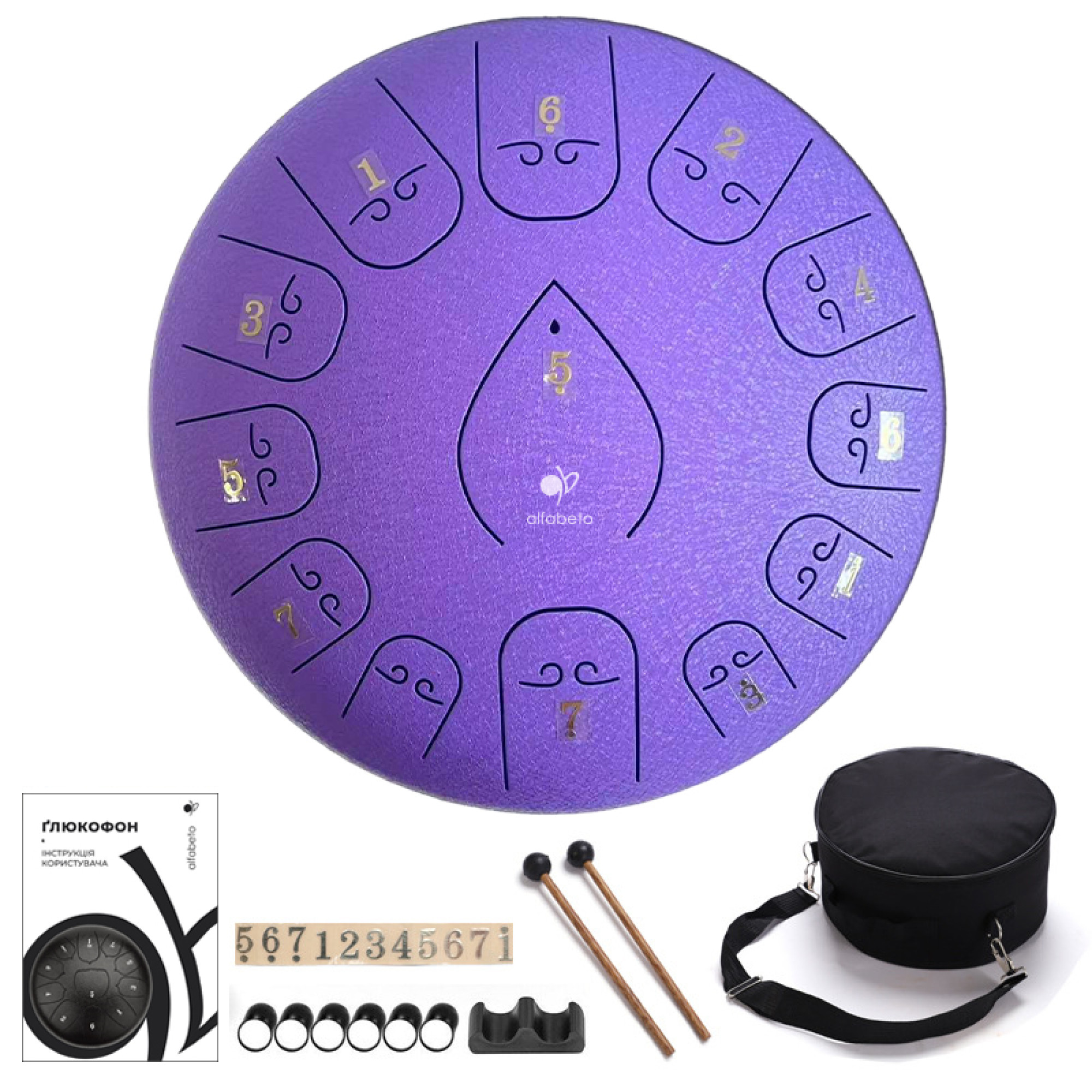 И это еще не все! В комплекте к этому замечательному инструменту Вы найдете удобную сумку для переноски, что позволит Вам брать глюкофон с собой куда угодно. Также в комплекте идут игровые палочки, 6 напальчников для игры и инструкция пользователя, которая содержит множество песен, нотные строки и цифровые обозначения. Этот инструмент – идеальный выбор для всех, кто мечтает окунуться в волшебный мир музыки и создать что-то неповторимое и необыкновенное.
