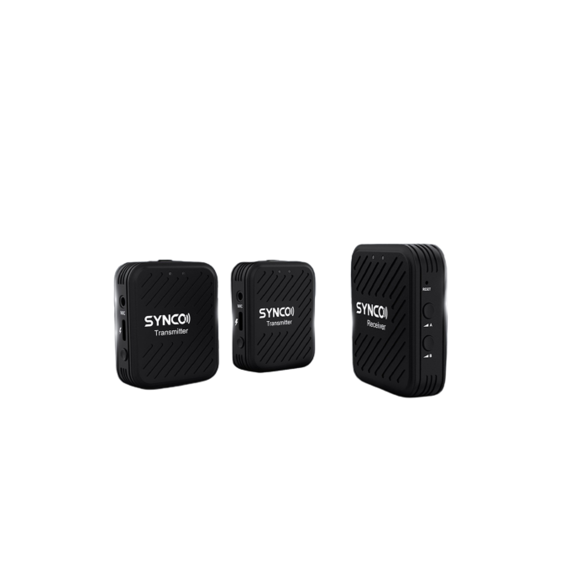 SYNCO G1 (A2) - первая система беспроводных петличных микрофонов (2,4 ГГц) и первый беспроводной микрофон DSP, выпущенный SYNCO. Он запускает алгоритм зашифрованной передачи SyncoderTM для достижения точного захвата аудиосигнала. Он имеет крошечный размер, что, однако, не влияет на его отличную производительность. Он принимает сигналы на расстоянии около 50 метров, обеспечивает 2 режима вывода (моно или стерео) для повторного отображения направления и распределения звука, предлагает дополнительный фильтр низких частот, а также регулировку усиления для идеального уровня сигнала, и имеет перезаряжаемую литиевую батарею для поддержки 8-часовой работы. Это одна из лучших беспроводных микрофонных систем для интервью/диалогов, а также для журналистов, видеооператоров и блогеров.