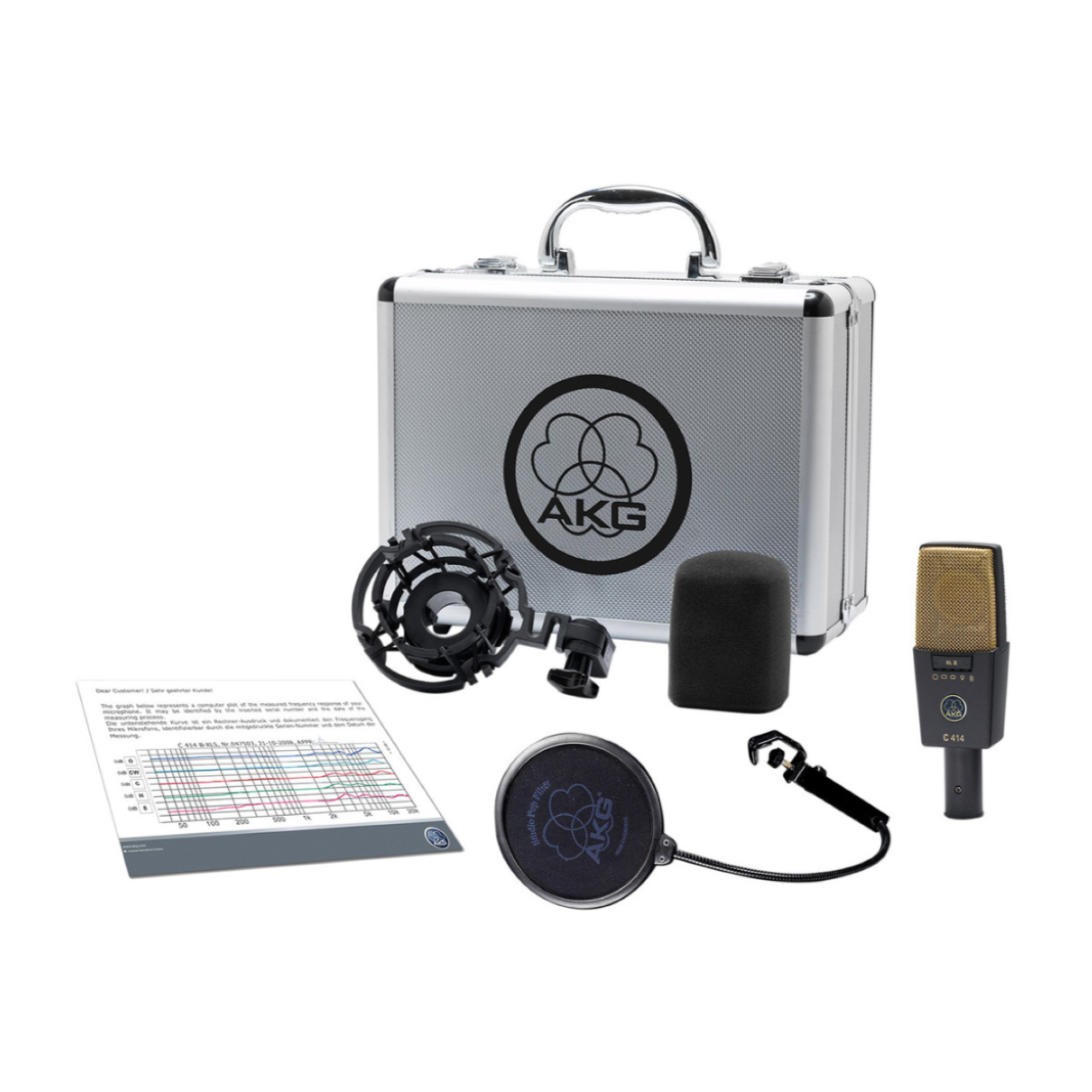 - В комплекте: подвесное крепление H85, поп-фильтр PF80, ветрозащита W414, металлический кейс