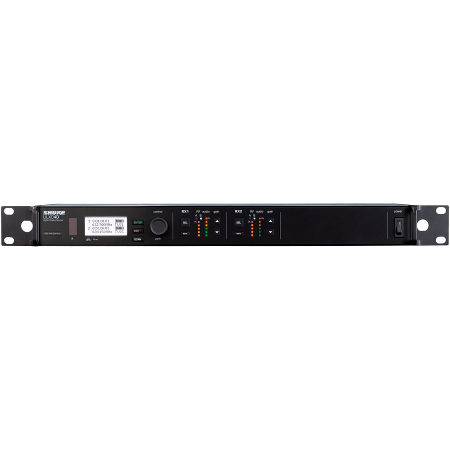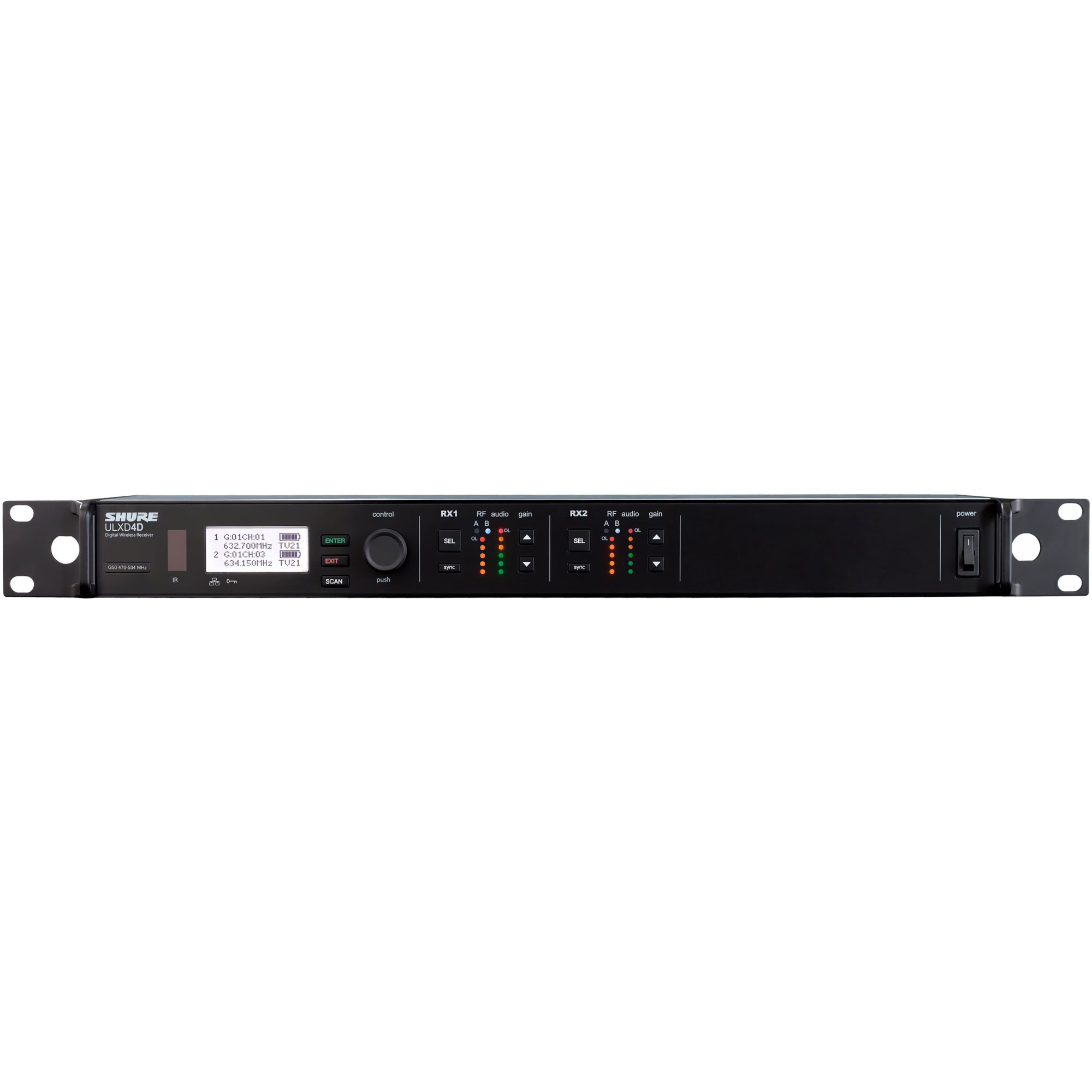 Каждый модуль приемника имеет собственные аудио- и ВЧ-измерители, регулятор усиления 60 дБ и выход XLR. Большой ЖК-дисплей и интуитивно понятные органы управления позволяют быстро выполнять настройки даже в условиях недостаточной освещенности. Дополнительные функции включают автоматическое сканирование частот, ИК-синхронизацию, оптимизацию усиления под любой источник входного сигнала и внутреннее ограничение для предотвращения клиппирования. Порты Ethernet также позволяют легко объединять несколько приемников в сеть для упрощения координации и развертывания частот. Кроме того, приложение Channels Mobile App позволяет управлять системой удаленно с устройства iOS. Приемник работает с широким спектром микрофонов и передатчиков Shure, включая нательные передатчики ULXD1 и ручные передатчики ULXD2, которые обеспечивают полную мобильность для ведущих/исполнителей, и базовые передатчики ULXD6 и ULXD8 на “гусиной шее” для конференц-залов с гибкой расстановкой мест. Приемники ULX-D также совместимы с нательными и ручными передатчиками QLX-D.