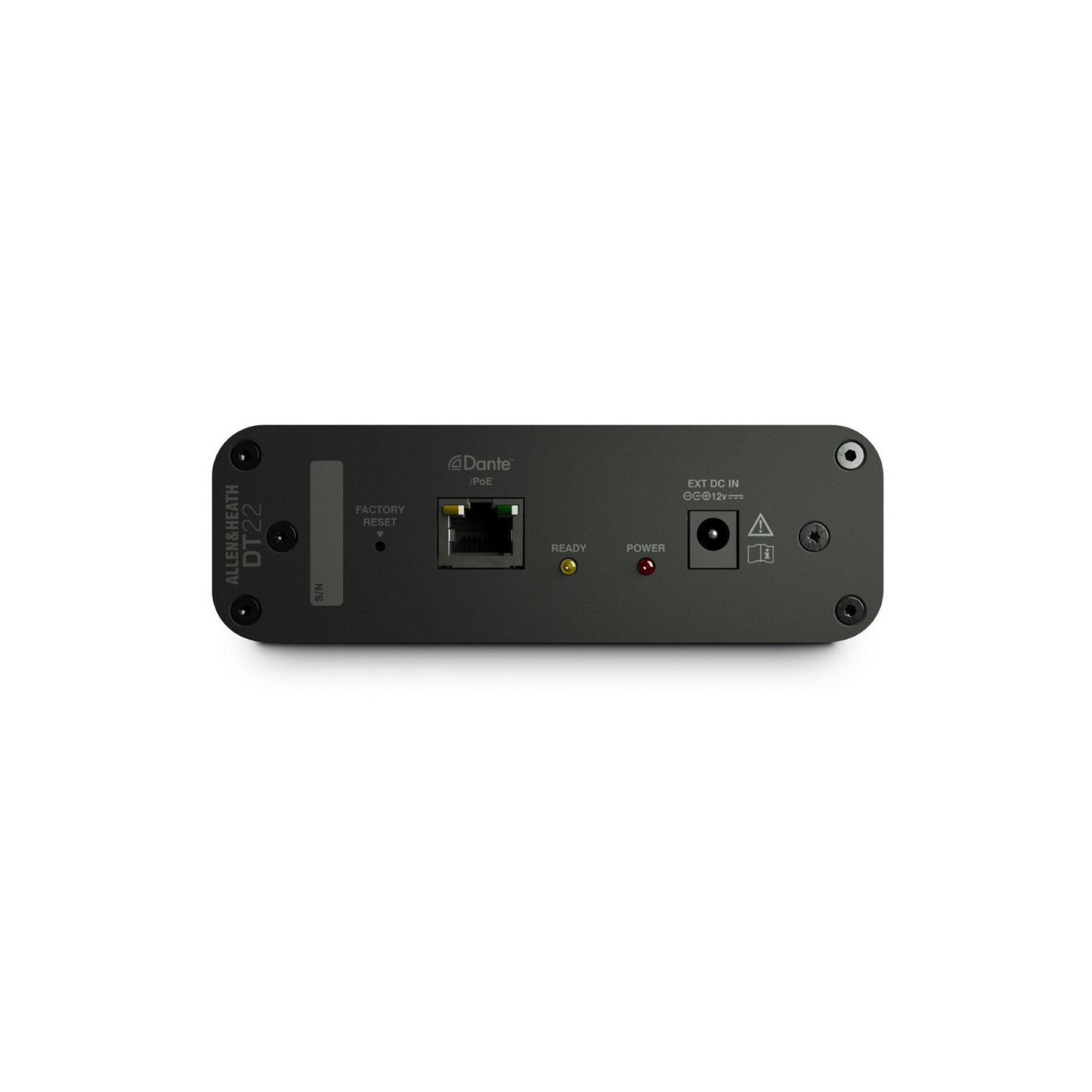 DT22-M совместим с любыми цифровыми микшерами Allen & Heath, поддерживающими карты Dante, а также с оборудованием сторонних производителей, оборудованным протоколом Dante.