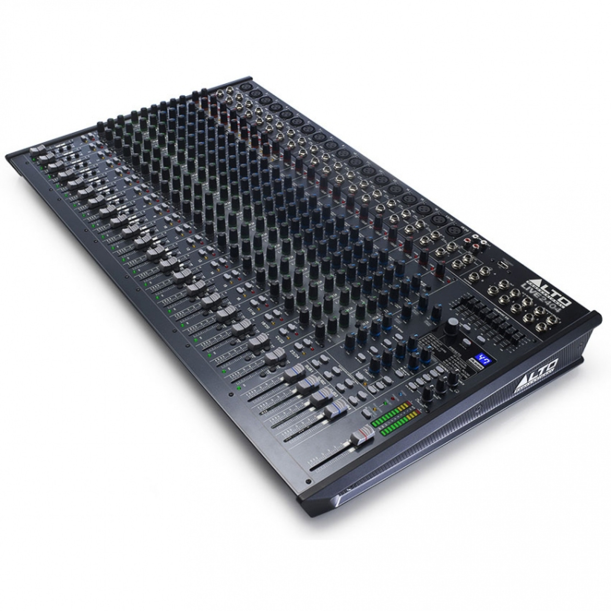 Alto Professional Live 2404 – это профессиональный микшерный пульт на 24-канала, функционал которого позволит Вам создать замечательный микс как на живых выступлениях, так и при работе в студии. Гибкая маршрутизация и множество встроенных DSP-эффектов, делают эту модель прекрасным выбором для проведения различных мероприятий: конференций, презентаций, камерных выступлений и тому подобное. Микшер оснащен 18-ю балансными XLR-входами с контролируемым фантомным питанием, также установлены 3-полосные эквалайзеры с параметрической серединой на каждый канал, четыре AUX-шины для подключения внешних эффектов или мониторинга, и самое важное - 9-полосный графический мастер-эквалайзер для супер-гибкой настройки частот. Доступный диапазон частот микшера от 20 Гц до 20 кГц, что достаточно хорошо при соотношении сигнал/шум в 105 дБ.