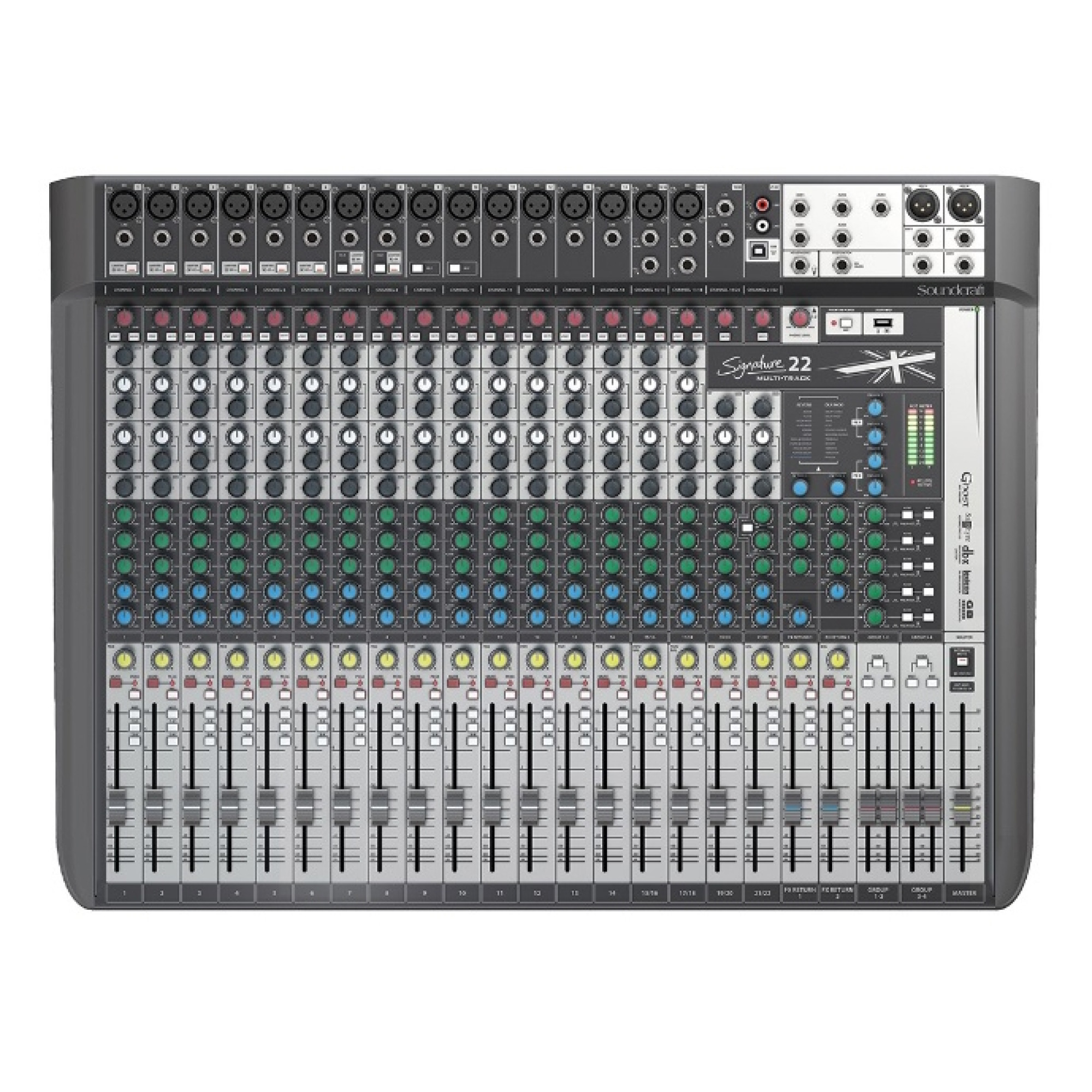Кроме того, Soundcraft Signature 22 MTK имеет 3 AUX шины и 2 aux/FX шины с гибким переключением Pre/Post.