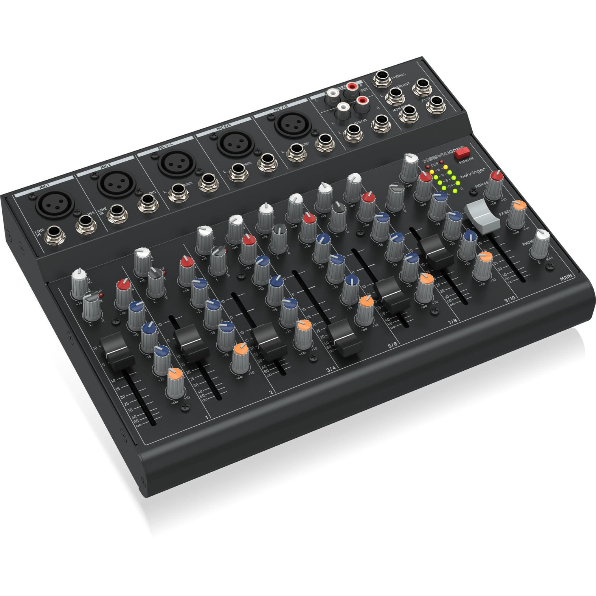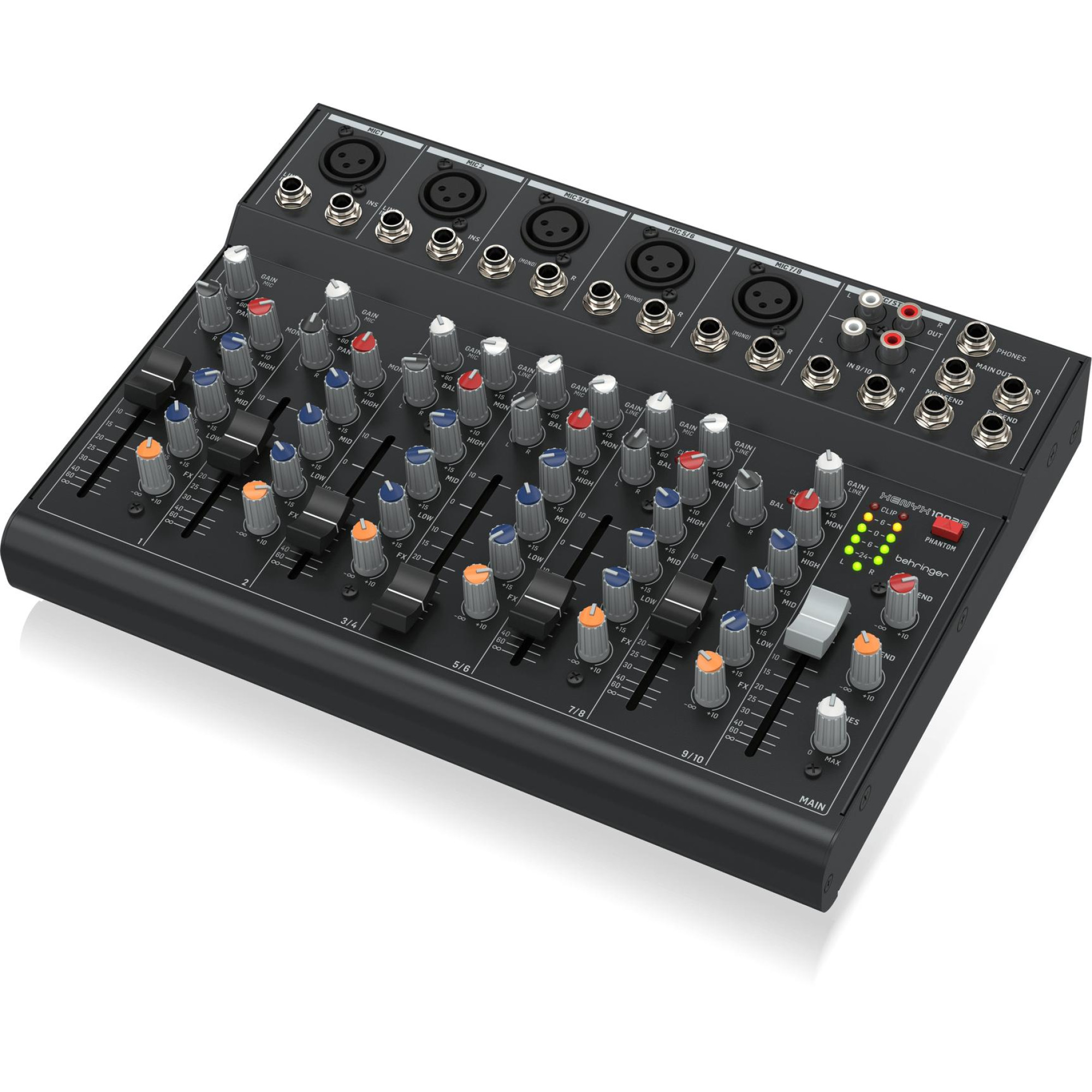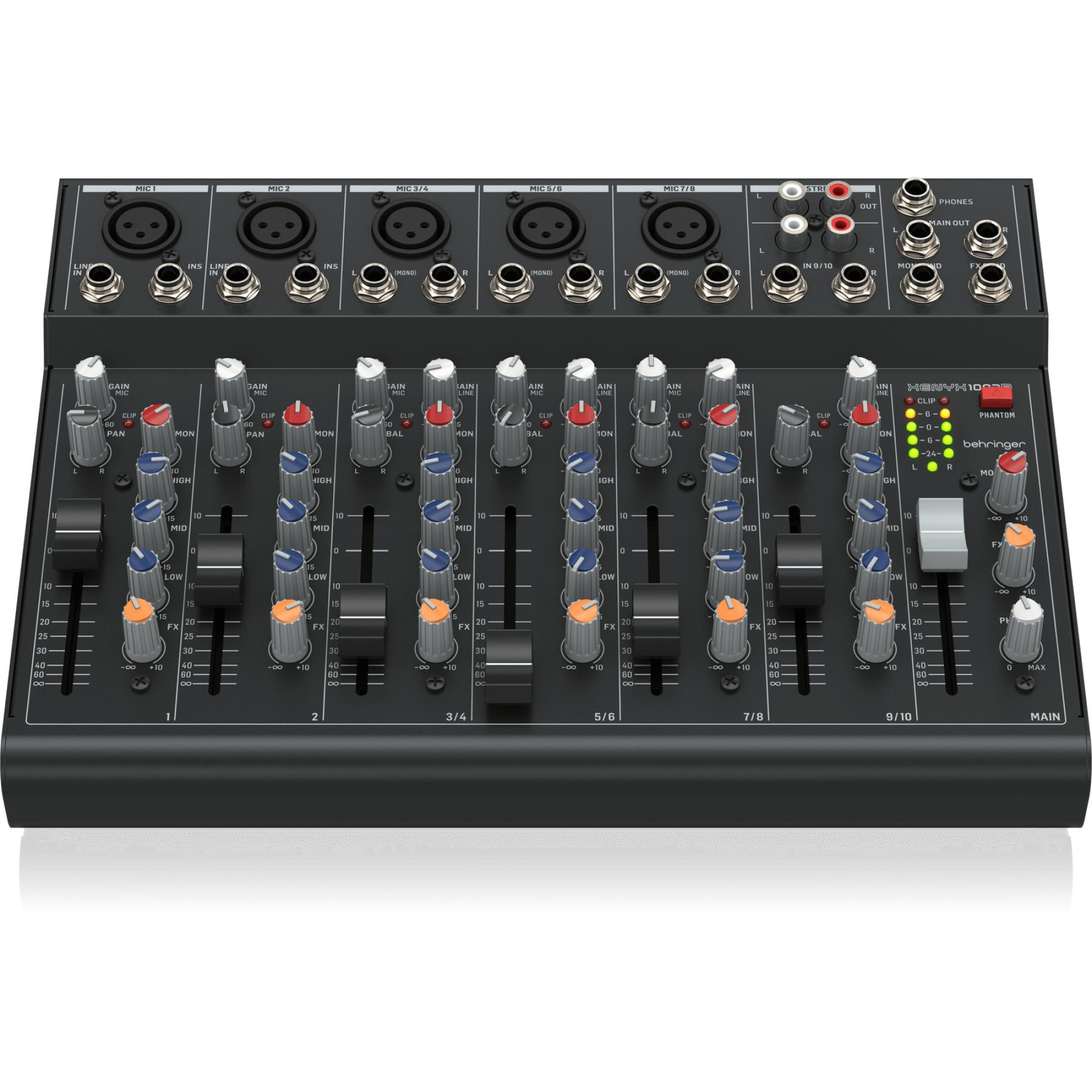 Входы и выходы RCA предназначены для записи и потокового воспроизведения, что делает XENYX 1003B идеальным для подкастов и потоковых трансляций. Кроме того, есть выход на наушники и основные выходы для мониторов на сбалансированных разъемах TRS 1/4”, что обеспечивает кристально чистый звук. Два разъема FX Send дают возможность подключения внешних эффект-процессоров.