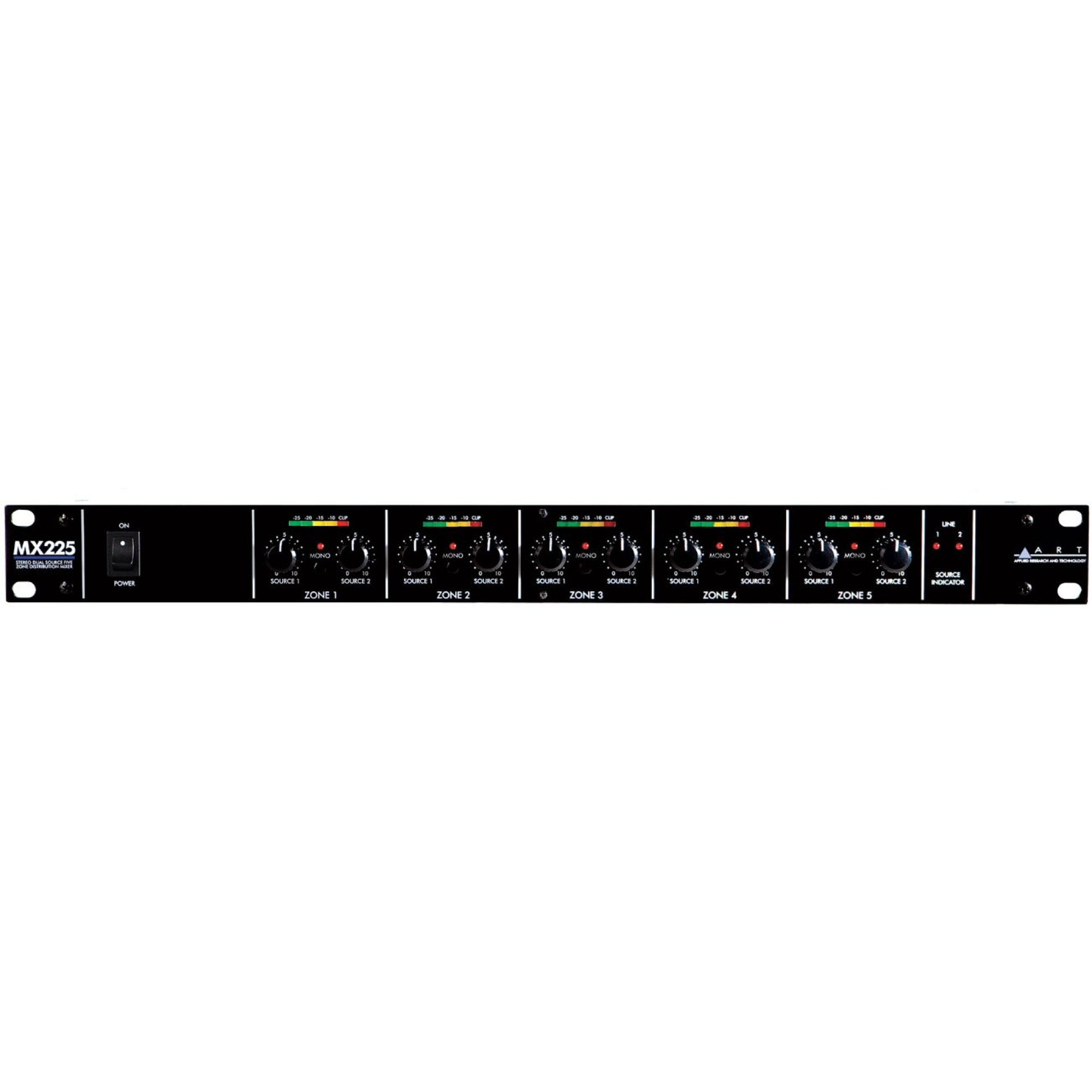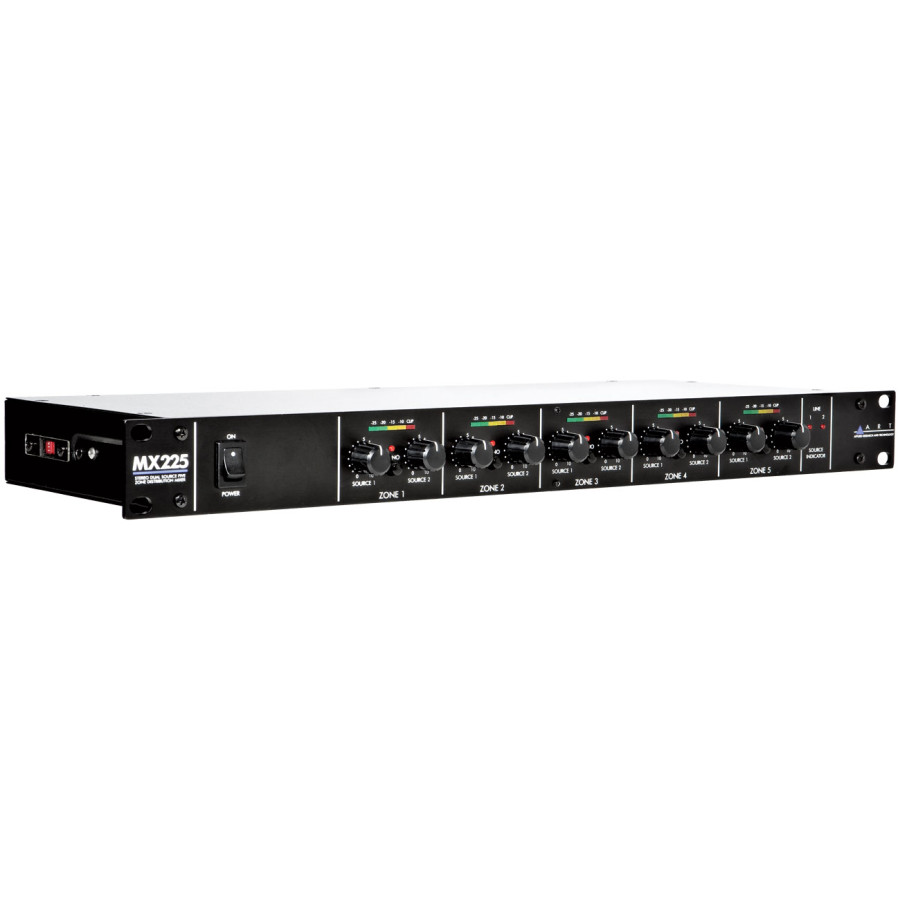 С микшерным пультом ART MX225 можно регулировать уровень входного сигнала и баланс для всех пяти каналов, а также управлять балансом левого и правого каналов. Каждая зона имеет светодиодный индикатор, отображающий выбранный режим, а также пять светодиодных индикаторов уровней, отображающих активность сигнала для каждой зоны.