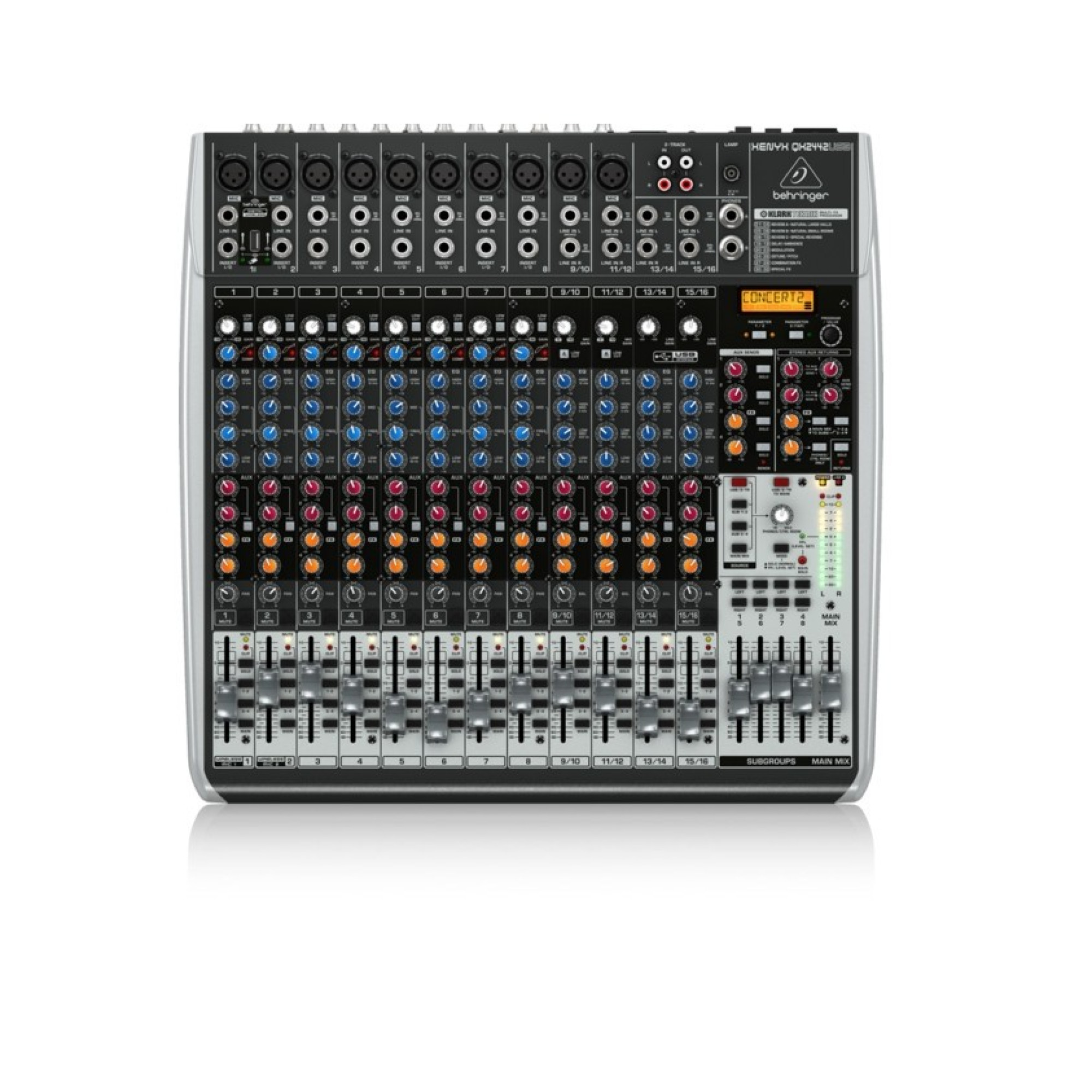 XENYX QX2442USB - следующее поколение XENYX Q Серии USB микшеров может справиться с любым живым концертом и обеспечить современного технического уровня инструменты профессионального качества записями. Модель оснащена ”беспроводной готовностью” для новых ULM Серии USB микрофонов, что делает ее первой в этом виде микшеров. Встроенный USB/аудио интерфейс , моно канал компрессоров и KLARK TEKNIK FX процессор со всем записывающим и редактирующим программным обеспечением превратит Ваш компьютер в полную, высокоэффективную студию.