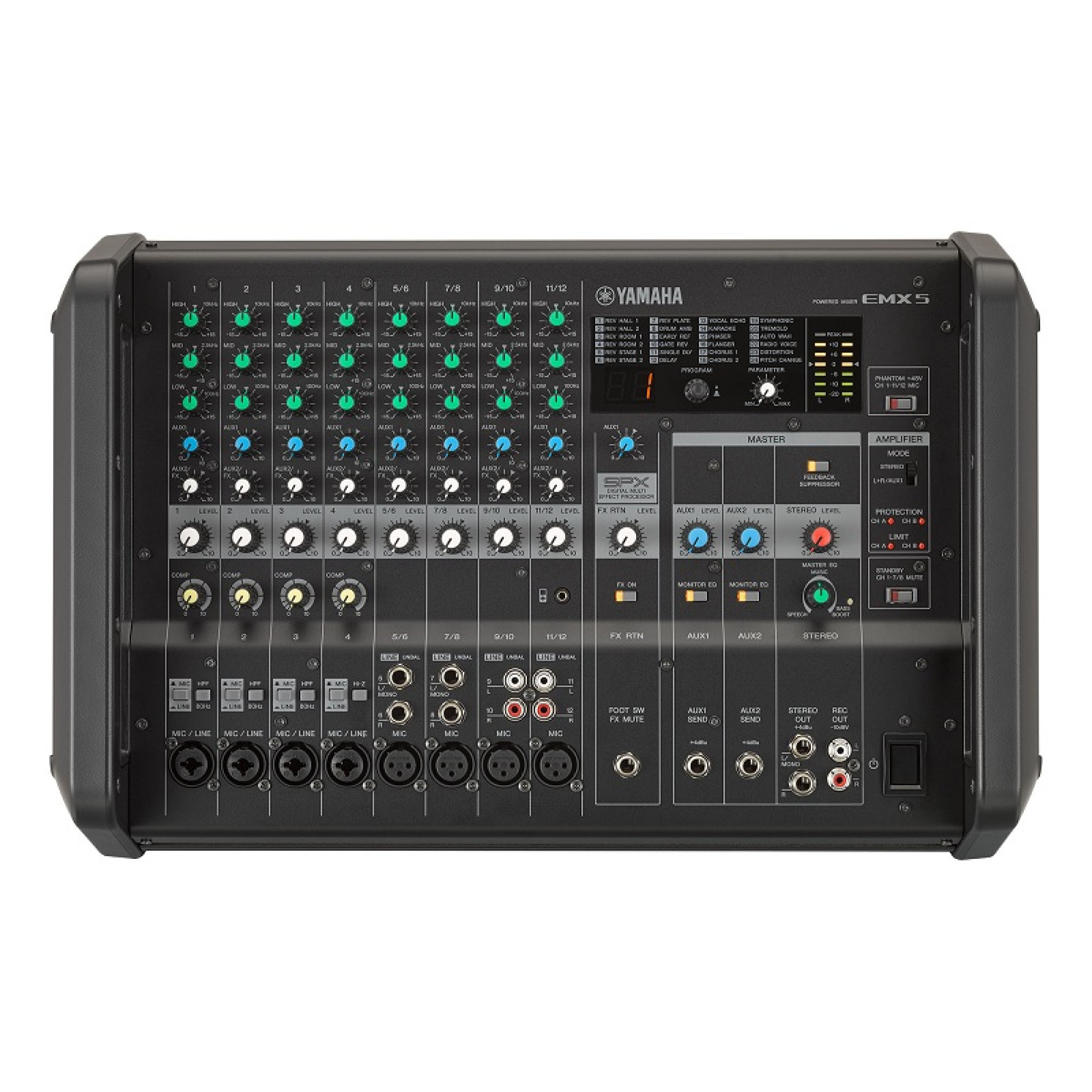 Грамотная обработка эффектами всегда придает миксу лоск и профессионализм, независимо музыкальный это материал или нет. Микшерный пульт EMX5 оснащается цифровым мультиэффектным процессором Yamaha, предлагая разностороннюю коллекцию из 24 эффектов. SPX поможет раскрасить Ваш микс, добавив глубину в языковые программы и атмосферу в выступление живой группы. В частности, качественный «реверб» и задержка расширяют пространственные рамки звука с неподдельным реализмом и натурализмом.