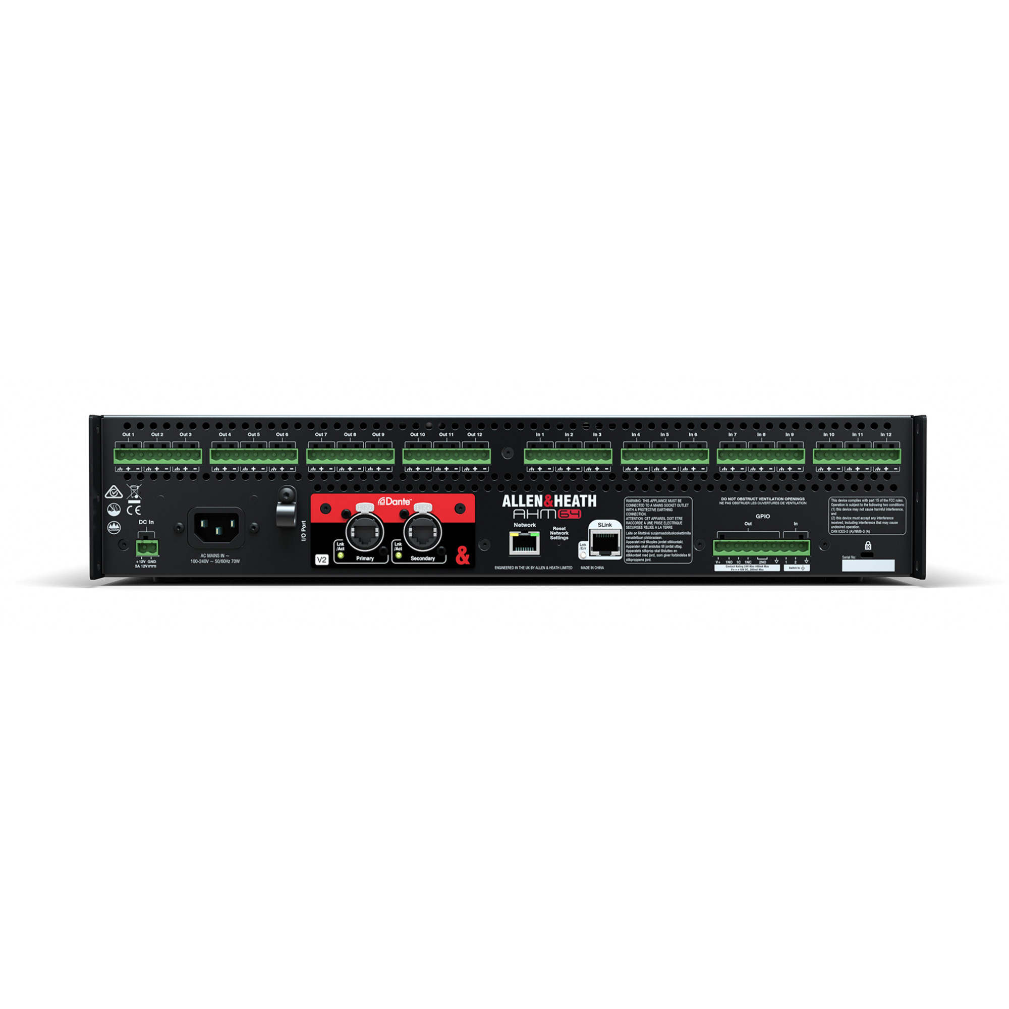 Allen & Heath AHM-64 – это передовой матричный звуковой процессор с 64×64 каналами, специально разработанный для эффективного управления звуком в корпоративных, розничных, гостиничных и других использованиях. Он позволяет быстро создавать масштабируемые звуковые системы, которые могут варьироваться от небольших комнат до целых кампусов.