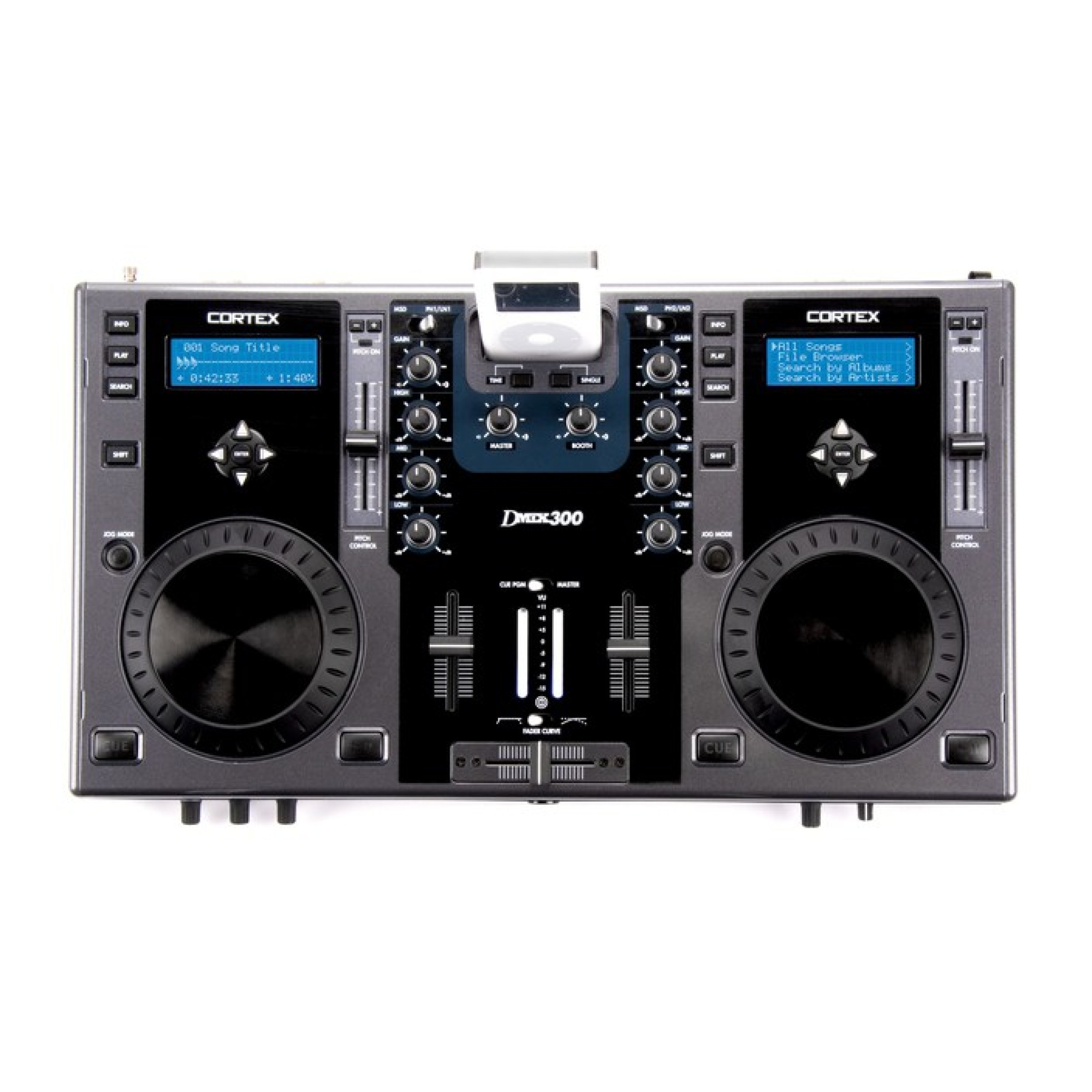 Рабочая станция - цифровой музыкальный контроллер. Возможность установки - iPod. Cue, Pitch и Play от внешнего устройства USB. Читает все USB устройства. Встроенный 2-х канальный микшерный пульт. Программируемое оборудование. Идеально подходит для профессиональных мобильных DJ-ев.