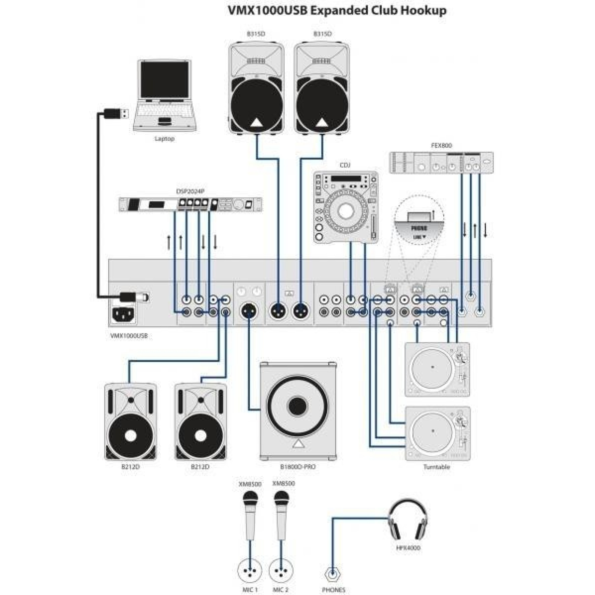 Новые DJ микшеры серии VMX содержат встроенный USB порт, что позволяет ди-джеям вводить МР3 записи в свой микс или пересылать свои оригинальные творения непосредственно на компьютер. Эти микшеры не требуют использования специальных драйверов и содержат комплект программного обеспечения с редактором для музыкального производства XT 2.5 BEHRINGER.