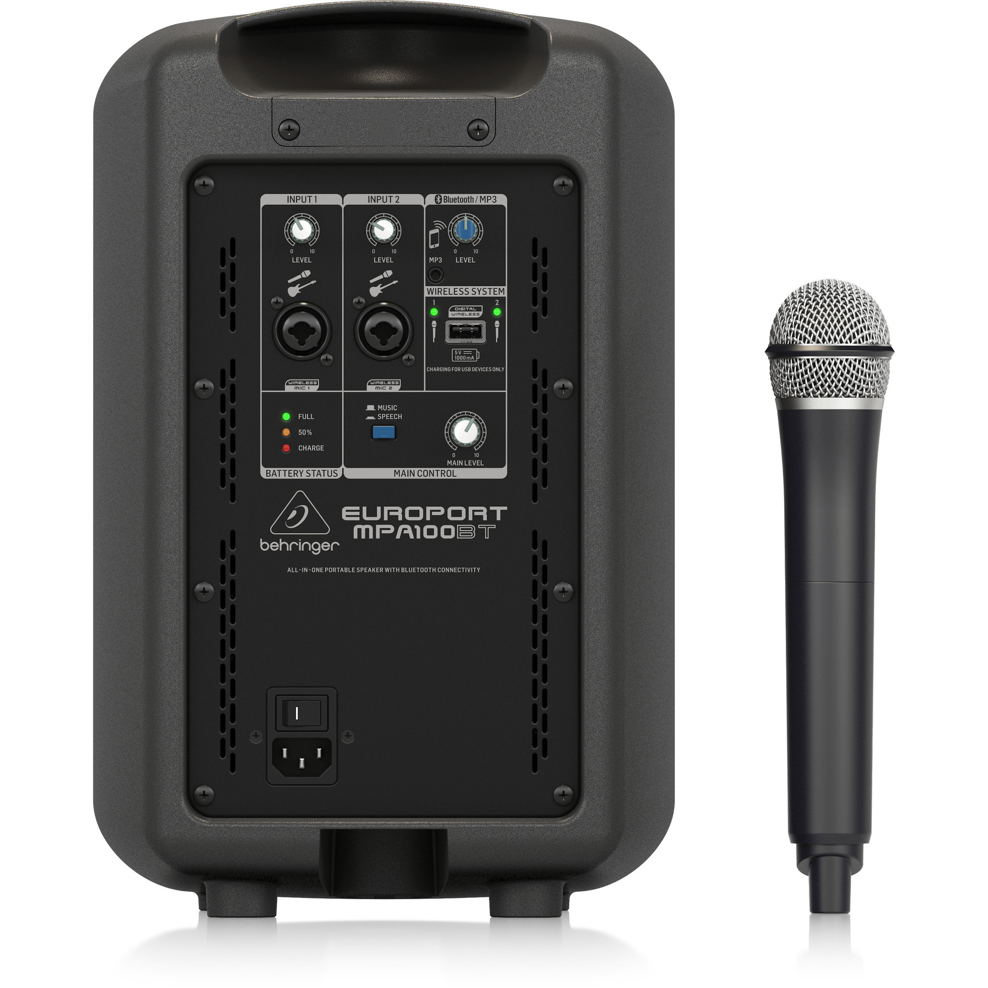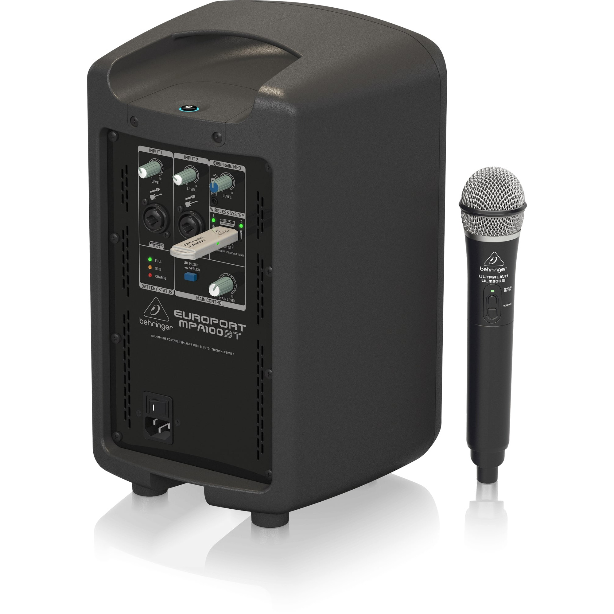 Behringer MPA100BT универсальная портативная акустическая система с подключением Bluetooth с беспроводным микрофоном, невероятно просто настроить и использовать – не требуется никакого технического знания или умения. 100 Вт качественного звука для аудитории до 300 человек. Идеально подходит для вечеринок, школьных заведений, корпоративных и образовательных презентаций, семинаров, аэробики, аукционистов, музыкантов, екскурс гидов, свадеб и т. д.