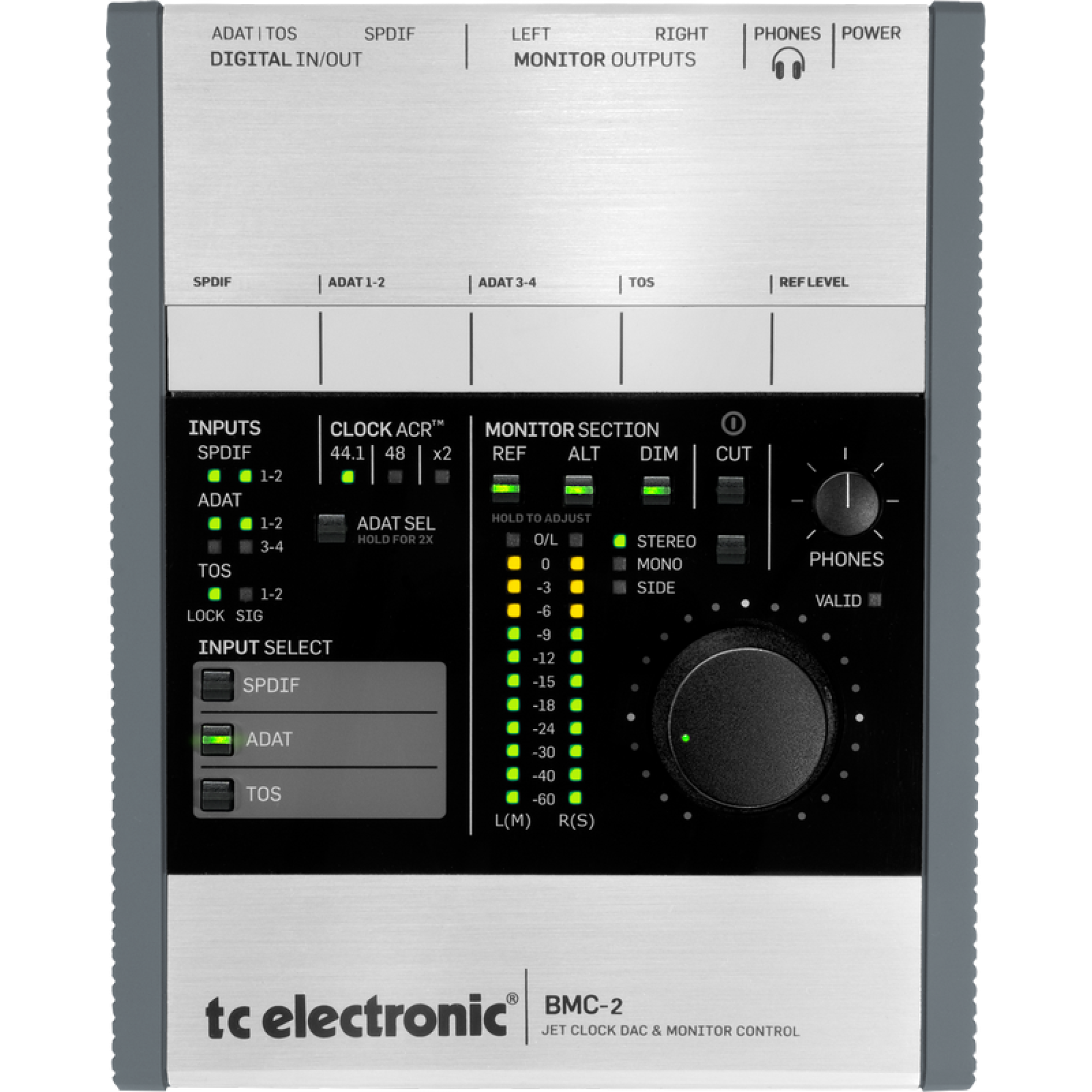 TC Electronic BMC-2 - мониторный контроллер и конвертор для профессионального управления мониторами легко работающий с Вашим компьютером и без него. Девайс не только позволяет переключаться между источниками цифровых входов - S/PDIF / AES3, TOS и ADAT - но также дает мгновенно контролировать уровень, позволяя определять свои собственные уровни эталонного мониторинга.