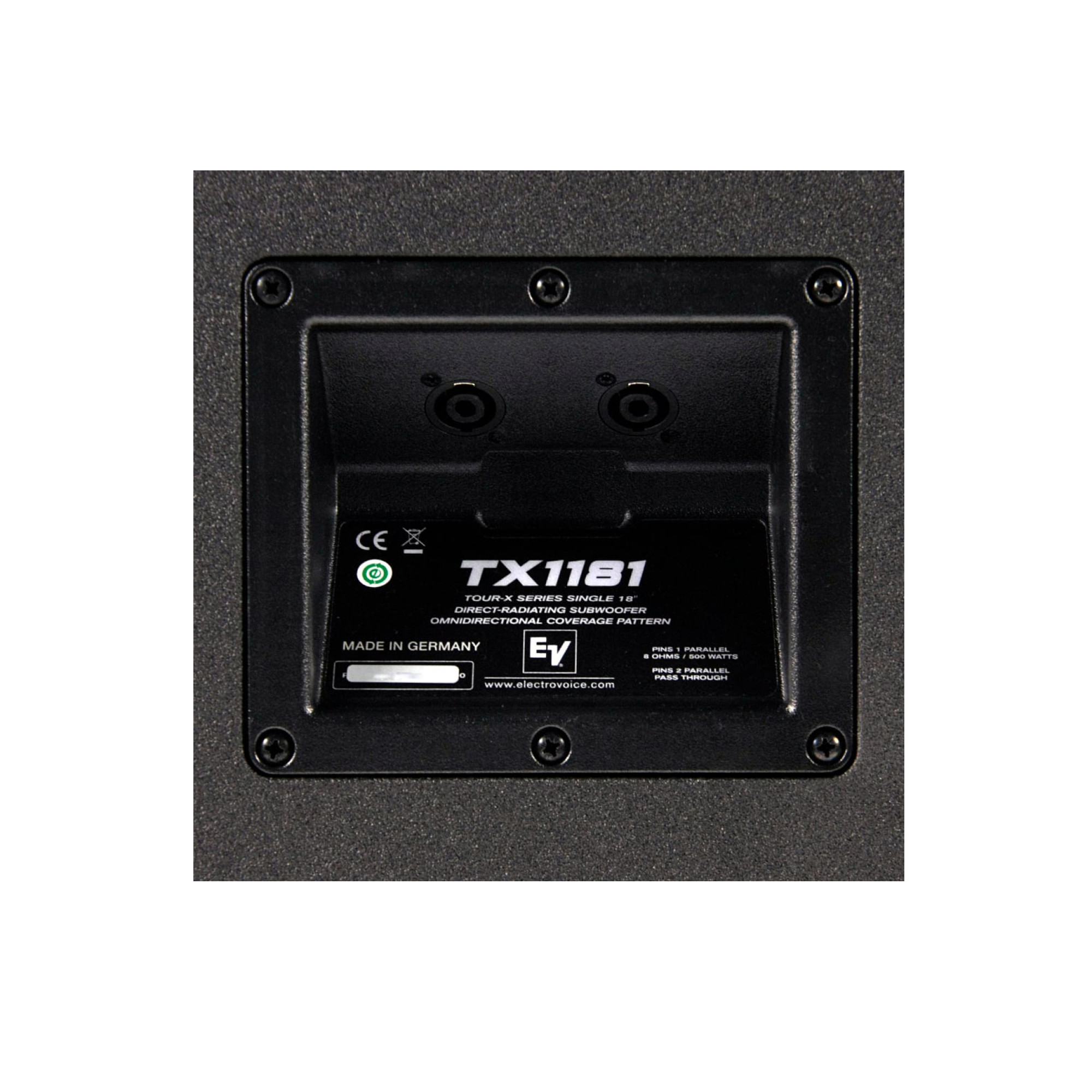 Electro-Voice TX1181 – это мощный сабвуфер, который может использоваться для расширения низкочастотных характеристик акустических систем TX1122 и TX1152. В TX1181 используется 18-дюймовый НЧ-динамик EVS-18S с высоким коэффициентом излучения, соединенный с хорошо укрепленным корпусом с большими портами с низким уровнем искажений, что позволяет добавить мощный басовый отклик к любой полнодиапазонной акустической системе. Встроенный фильтр низких частот позволяет подключать TX1181 параллельно с TX1122 или TX1152 на один канал усилителя, что устраняет необходимость в дополнительных каналах усилителя и обработке. TX1181 имеет множество особенностей, которые делают его универсальной сабвуферной системой. Корпус изготовлен из комбинации MDF и фанеры и покрыт лаком EVCoatTM для максимальной прочности и долговечности. Уникальная конструкция решетки очень прочна, устойчива к вмятинам и оснащена вращающимся логотипом. Четырехсторонние ручки позволяют удерживать TX1181 в различных положениях. Утопленная панель входов с двумя разъемами Speakon скрывает разъемы и позволяет размещать их ближе к стене или другой границе. Встроенное крепление для стойки позволяет установить над сабвуфером TX1122 или TX1152.