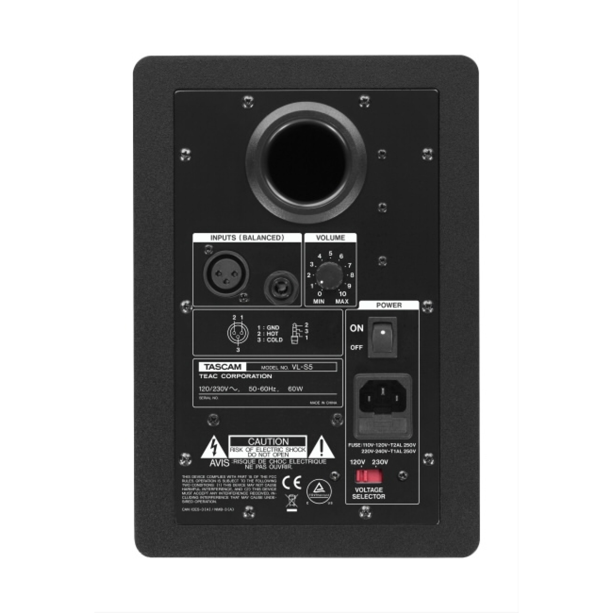 Модель VL-S5 изготовлена в корпусе из MDF и имеет порт фазоинвертора на задней стенке. Оба динамика имеют магнитное экранирование. Встроенный двухполосный усилитель обеспечивает 70 Вт суммарной мощности (НЧ – 40 Вт, ВЧ – 30 Вт). Предусмотрена защита от перегрева, радиочастотных помех и превышения выходного тока. Все разъёмы и органы управления расположены на задней стенке монитора. В наличии имеются балансные входы XLR и TRS и регулятор громкости.
