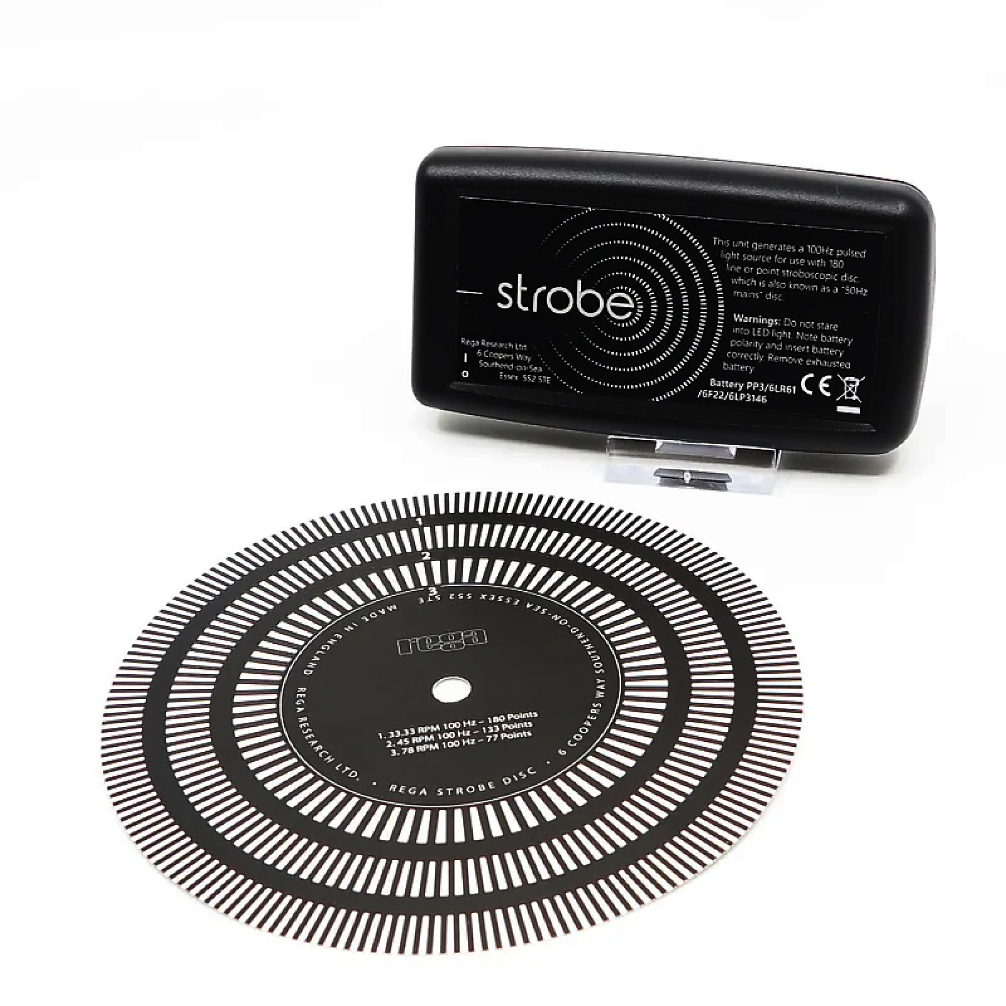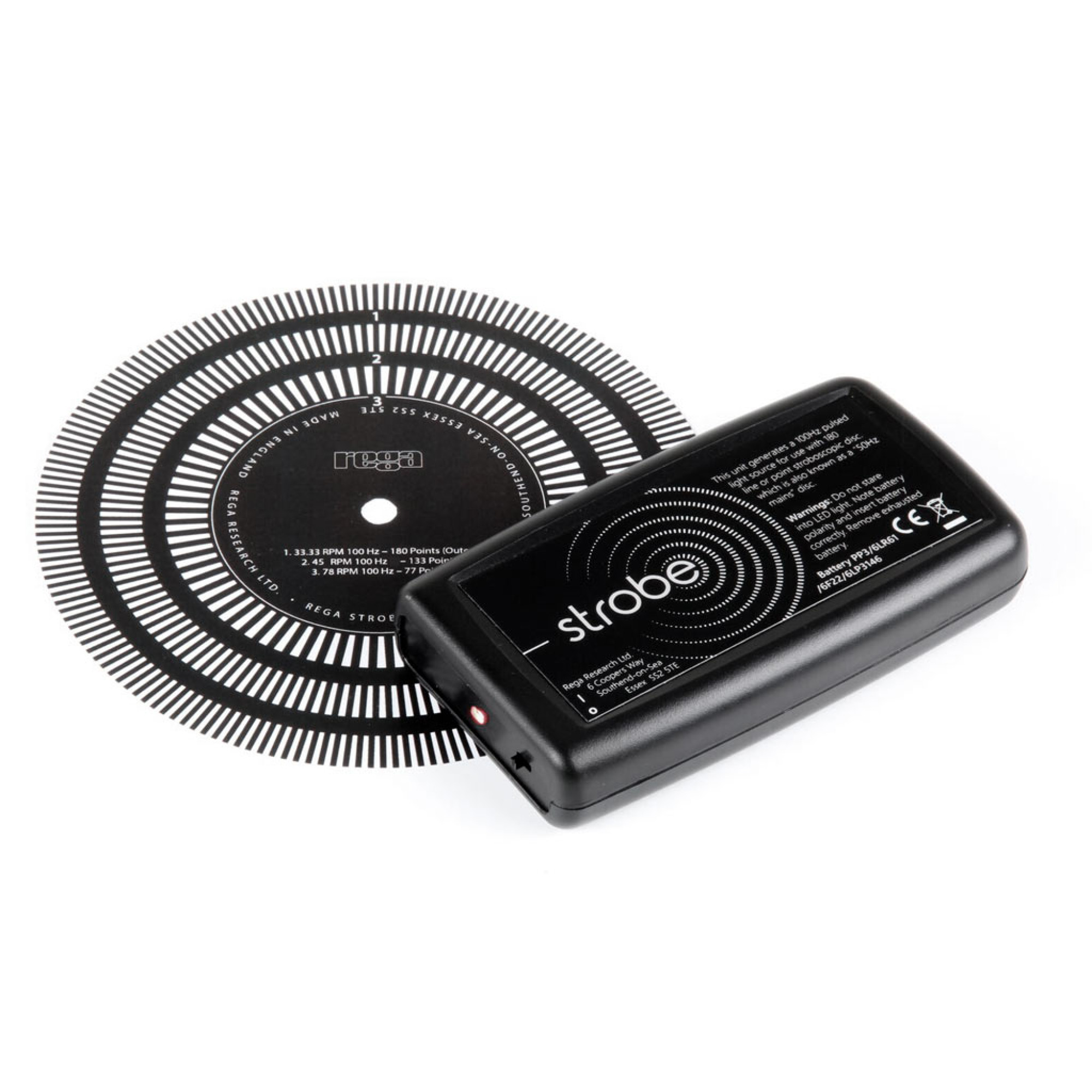 Rega Strobe Kit предназначен для оценки скорости вращения любого винилового проигрывателя. Ручной стробоскоп генерирует импульсный свет частотой 100 Гц для использования с прилагаемым 180-линейным стробоскопическим диском. Создан как идеальный партнер для регулируемого по скорости Rega Neo PSU. Просто положите прилагаемый стробоскопический диск непосредственно на мат проигрывателя. Когда проигрыватель работает на скорости 33⅓, 45 или 78 об/мин, держите светодиод стробоскопа прямо над линиями, чтобы оценить скорость вращения проигрывателя.