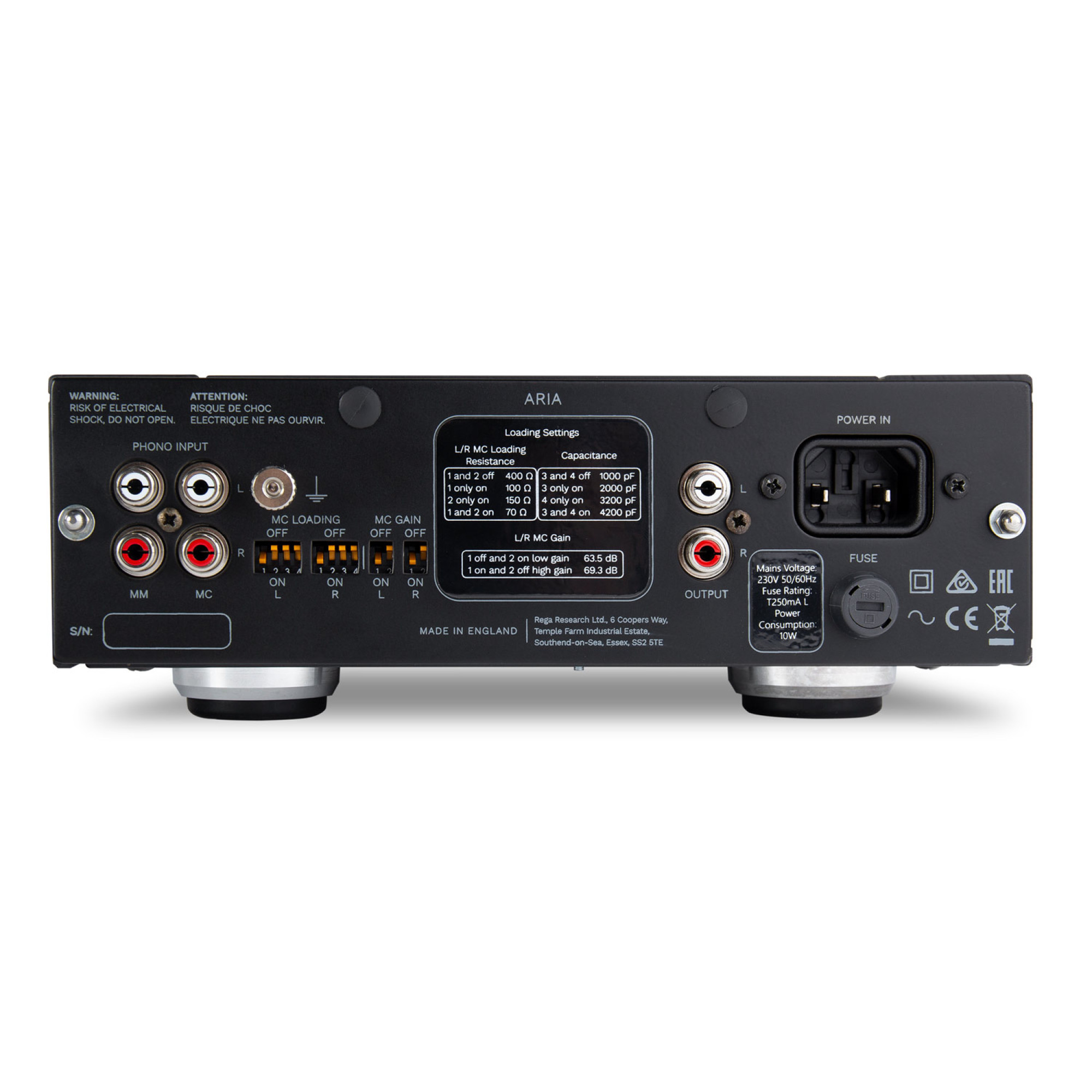Rega Aria – это "полностью аналоговый усилитель" без цифровых схем управления. Полностью алюминиевый корпус экранирует внутреннюю схему от любых паразитных радиочастотных сигналов. Конструкторы избежали включения лишних устройств, поскольку они мешают прохождению сигнала и ухудшают качество звучания. В Aria реализовано множество инновационных конструкторских идей, включая самонастраивающийся сервоконтроллер, который поддерживает оптимальный режим работы входной цепи МК, компенсируя любые колебания температуры окружающей среды или рабочей температуры.