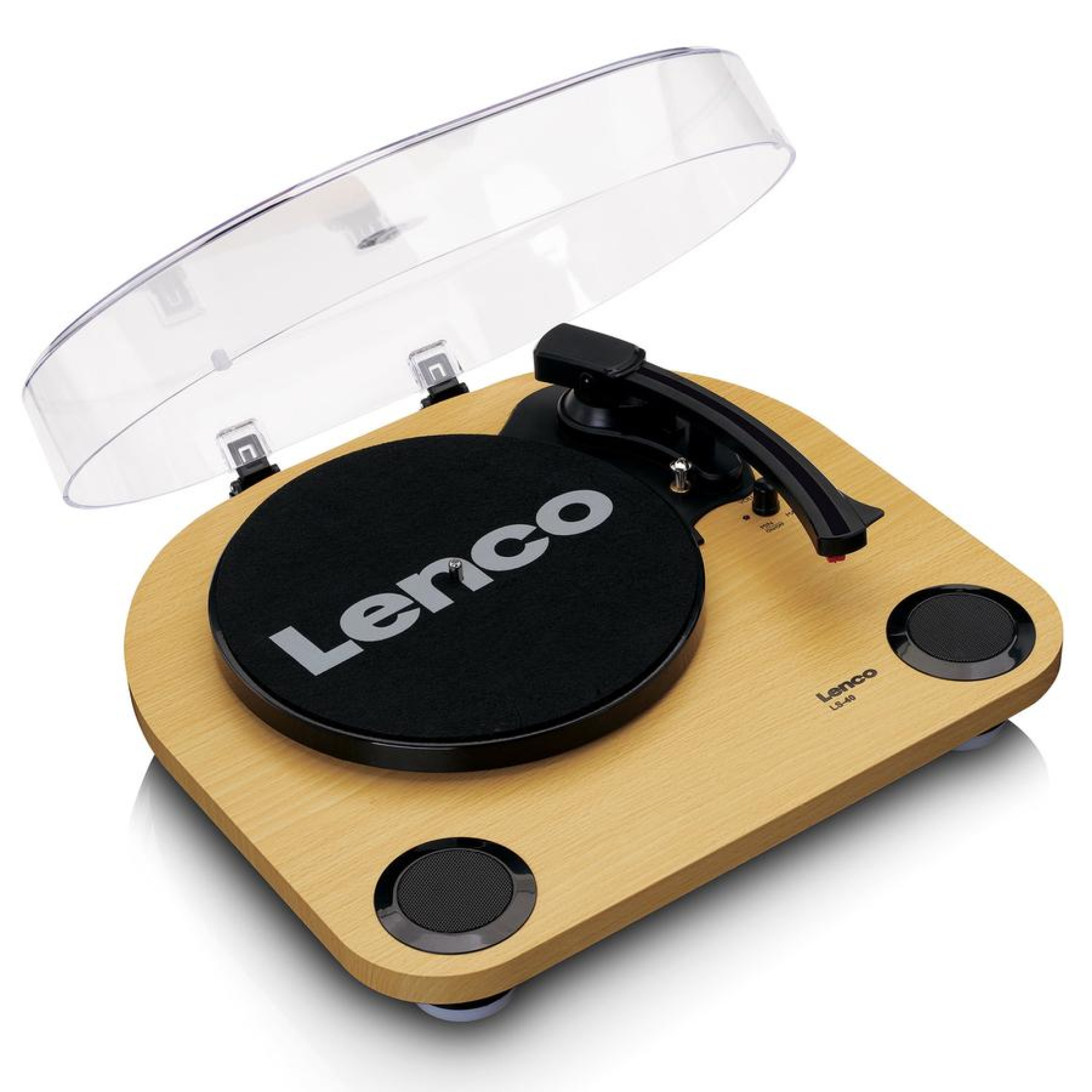 Lenco LS-40 – современный проигрыватель грампластинок с двумя встроенными динамиками. Наслаждайтесь любимым винилом одним нажатием кнопки. Забудьте о сложных музыкальных системах, Lenco LS-40 без труда оживит ваши записи. Для большей громкости используйте внешние динамики и разъем RCA на задней панели проигрывателя. Таким образом, каждая комната наполняется музыкой. Проигрыватель также имеет вход AUX. В Lenco лучше всех знают, что вы хотите заботиться о своем виниле с особой тщательностью, поэтому Lenco LS-40 является полуавтоматическим. По окончании воспроизведения пластинки игла автоматически вернется в подлокотник. Это предотвращает появление царапин и позволяет дольше наслаждаться любимыми пластинками. Lenco LS-40 имеет пылезащитный чехол, который защищает ваш проигрыватель от пыли, когда он не используется.