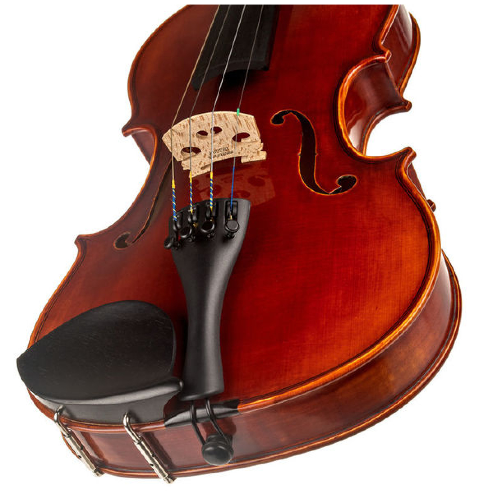 В комплекті до скрипки входить все необхідне для того, щоб Ви могли крокувати музичним шляхом без зайвих турбот. Легкий непромокальний кейс забезпечить надійний захист інструменту від будь-яких негод та впливів зовнішнього середовища. Дерев'яний смичок з фернамбукового дерева гарантує Вам високу якість відтворення звуку, а каніфоль Pirastro Schwarz Rosin додасть Вашій грі ще більше витонченості та експресії.