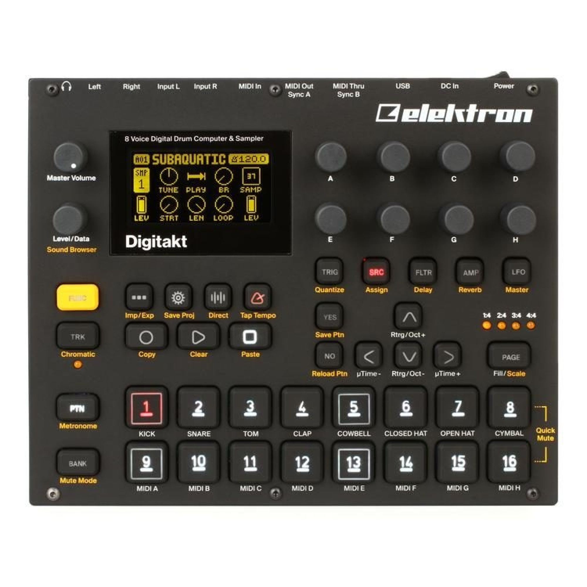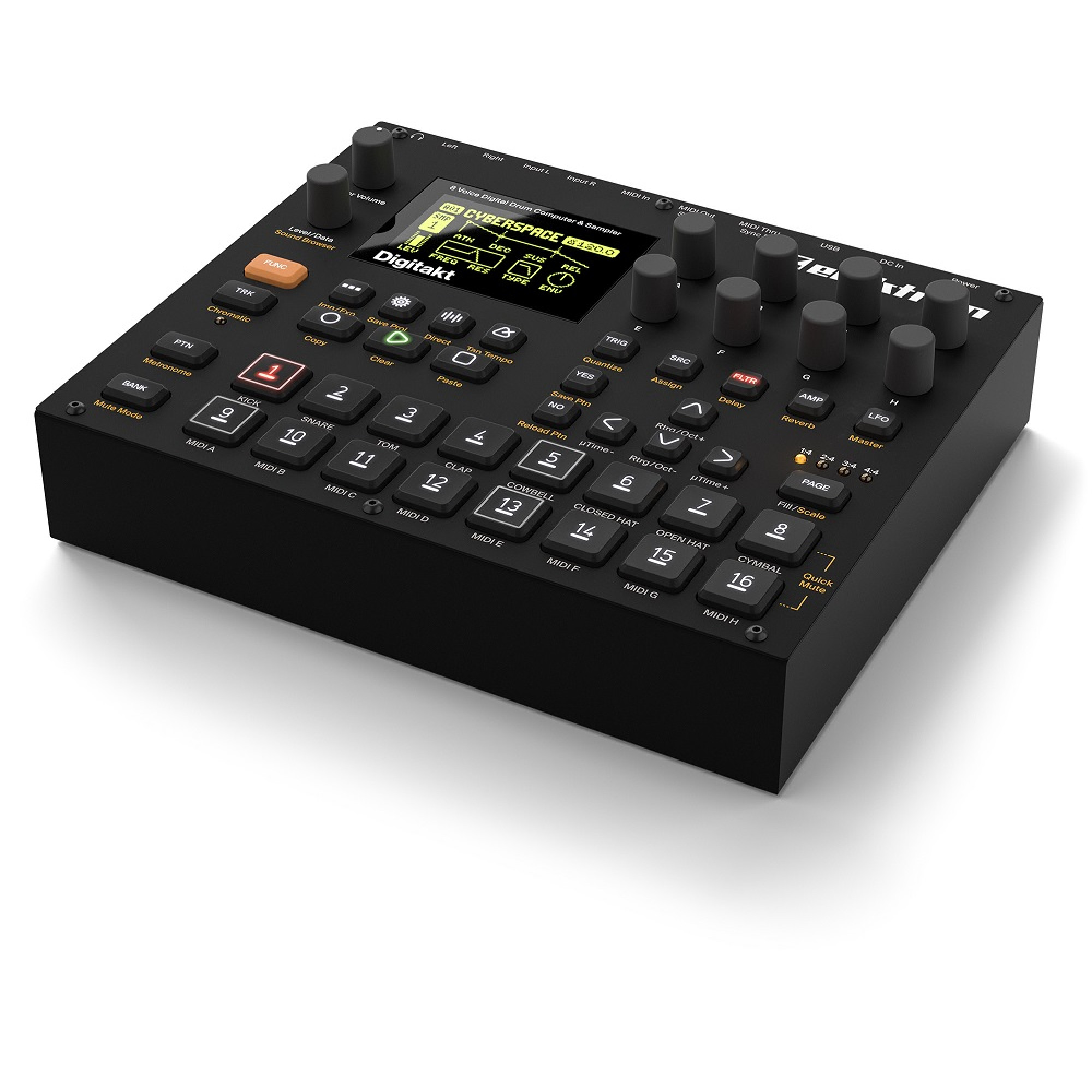 Digitakt - це компактна драм-машина для семплювання від Elektron. Вона містить всі необхідні інструменти, для створення гарного ритму. Цифровий і дуже гнучкий звуковий движок, можливість семпліювання, зручний секвенсер, спеціальні треки для керування зовнішнім MIDI-обладнанням та підтримка Overbridge.