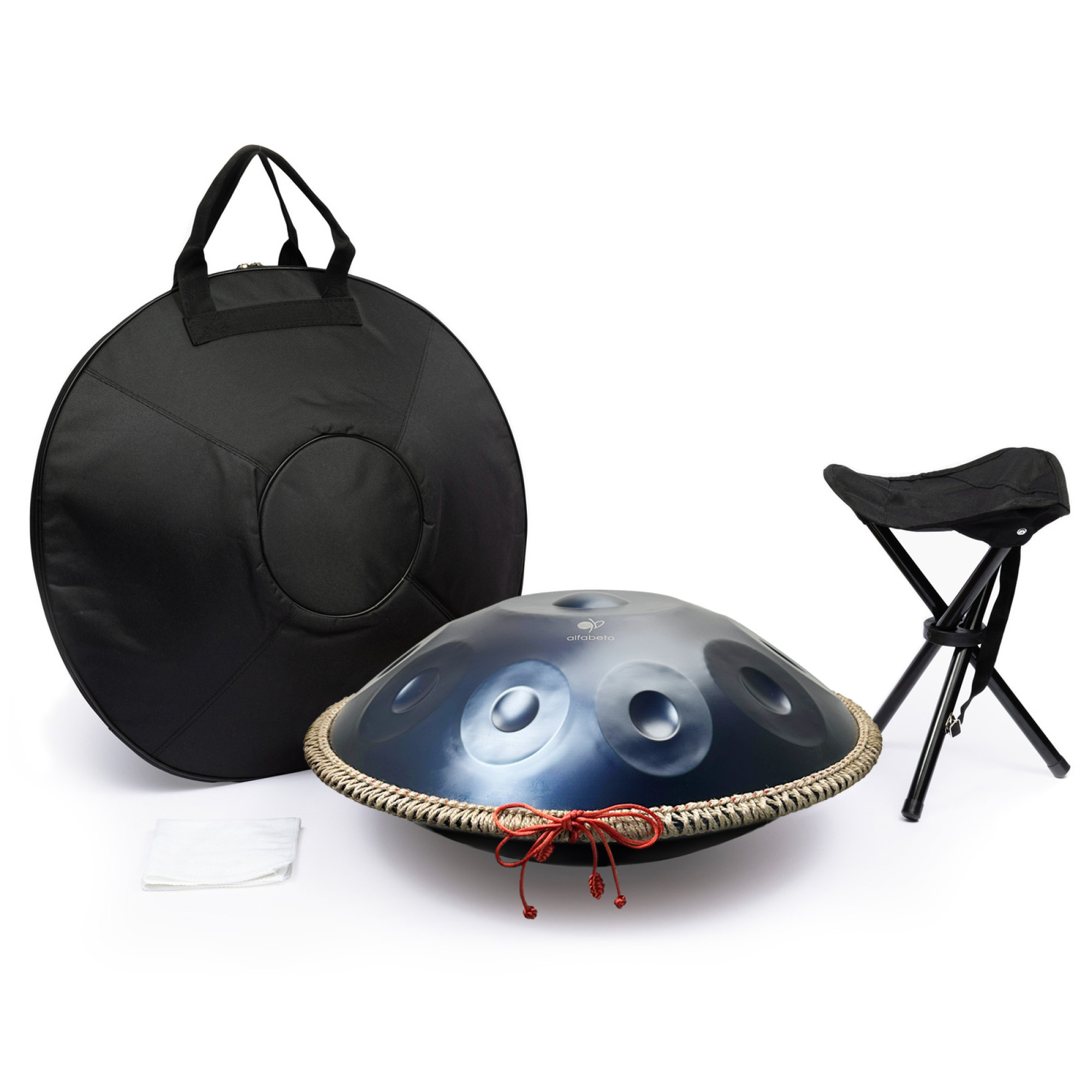У комплекті з хендпаном Alfabeto Neptune2210 входить стійка із дерева або металу для зручності гри (матеріал стійки залежить від надходження, додатково уточнюйте у менеджера) та чохол для зберігання та транспортування інструменту. Це робить хендпан Neptune2210 ідеальним вибором для музикантів, які шукають інструмент з неперевершеним звучанням та екзотичним виглядом. З ганґом Alfabeto Neptune2210 Ви можете створювати неповторну музику, яка перенесе Вас у світ загадковості та глибини планетарного простору.